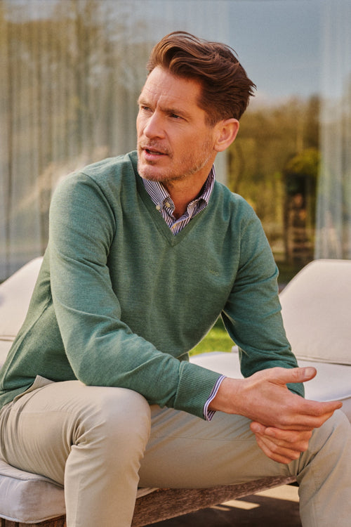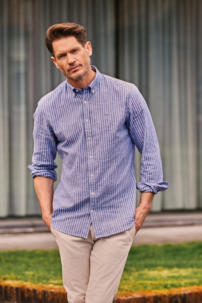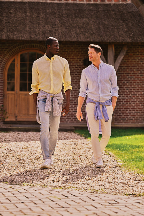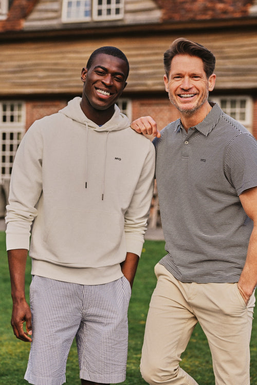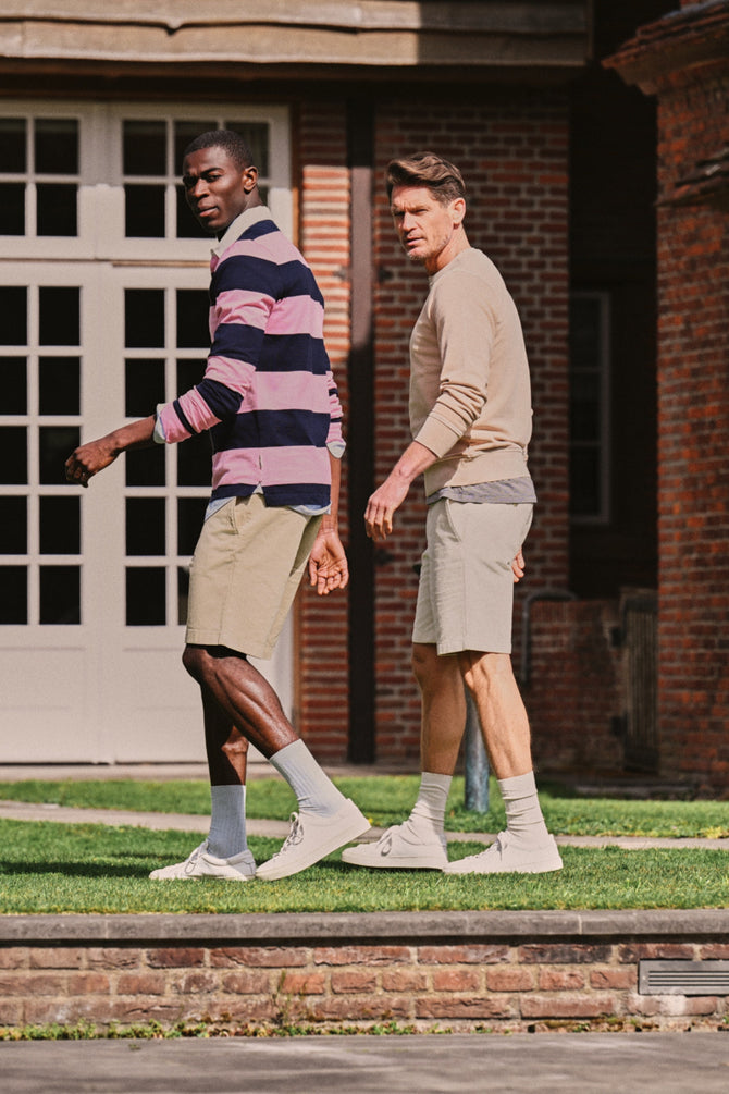 Denk aan een zonnige dag op het erf van een statig Amerikaans landhuis. De zon schijnt door de bomen, een zachte bries waait over het perfect gemaaide gazon, en stijl staat centraal. Onze nieuwste zomerlooks brengen de sfeer van een klassieke garden estate tot leven — met een knipoog naar Amerikaanse sports heritage. Denk aan perfecte polo’s, luchtige overhemden, relaxed tailoring en sportieve invloeden in frisse kleuren en natuurlijke stoffen. Laat je inspireren door zorgvuldig gestylde outfits — ideaal voor zomerse dagen. Klik op de look om direct de bijpassende items te shoppen.
