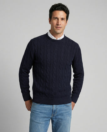 2. Cable Knit Sweater Cotton Crew Neck