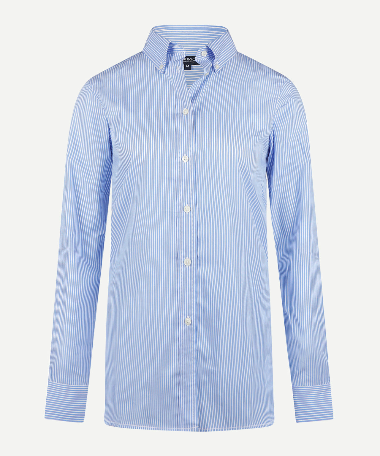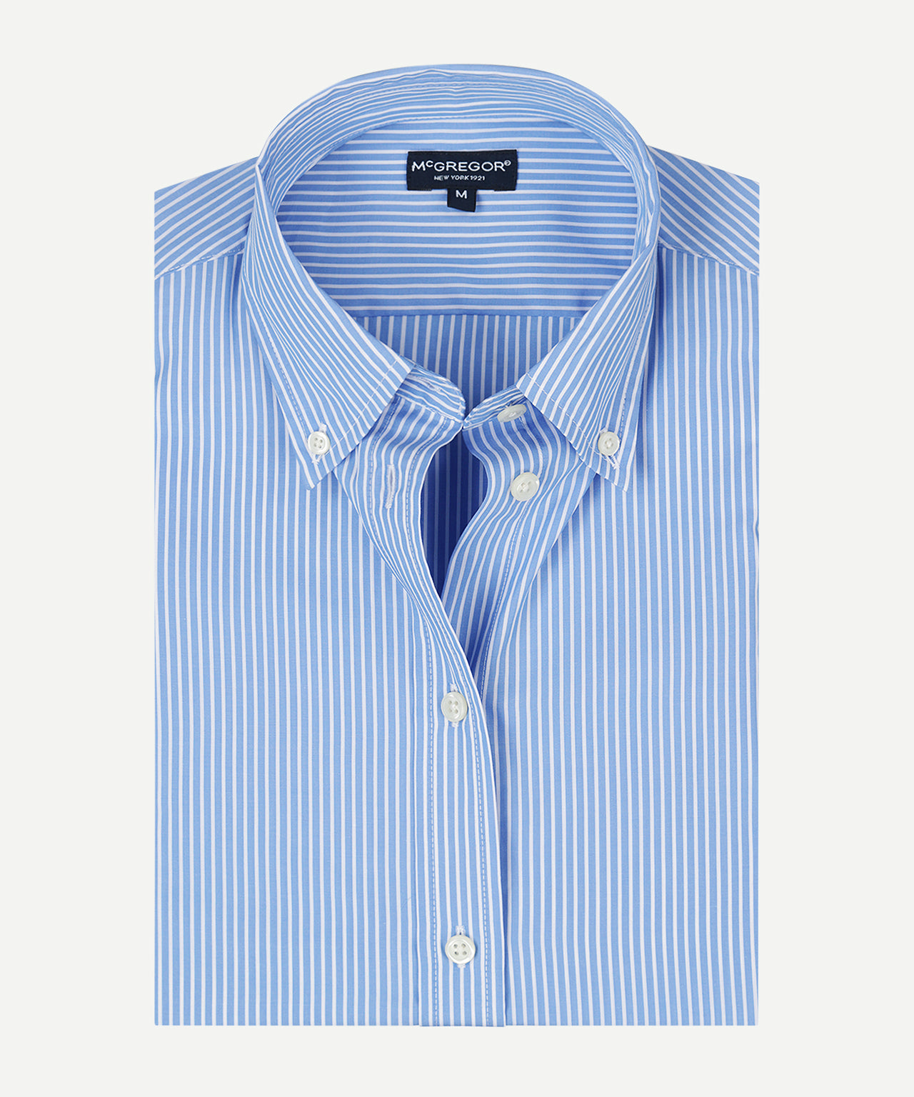 The slim fit and long sleeves give the blouse a feminine and polished look. The subtle stripe pattern provides a classic touch, while the McGregor logo on the chest adds a recognizable detail.