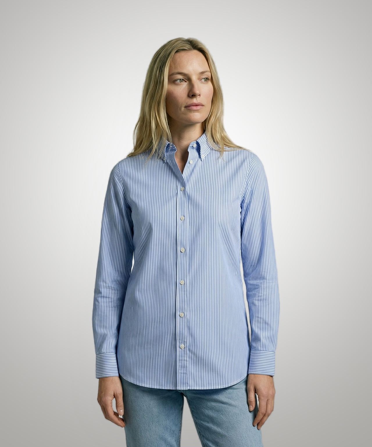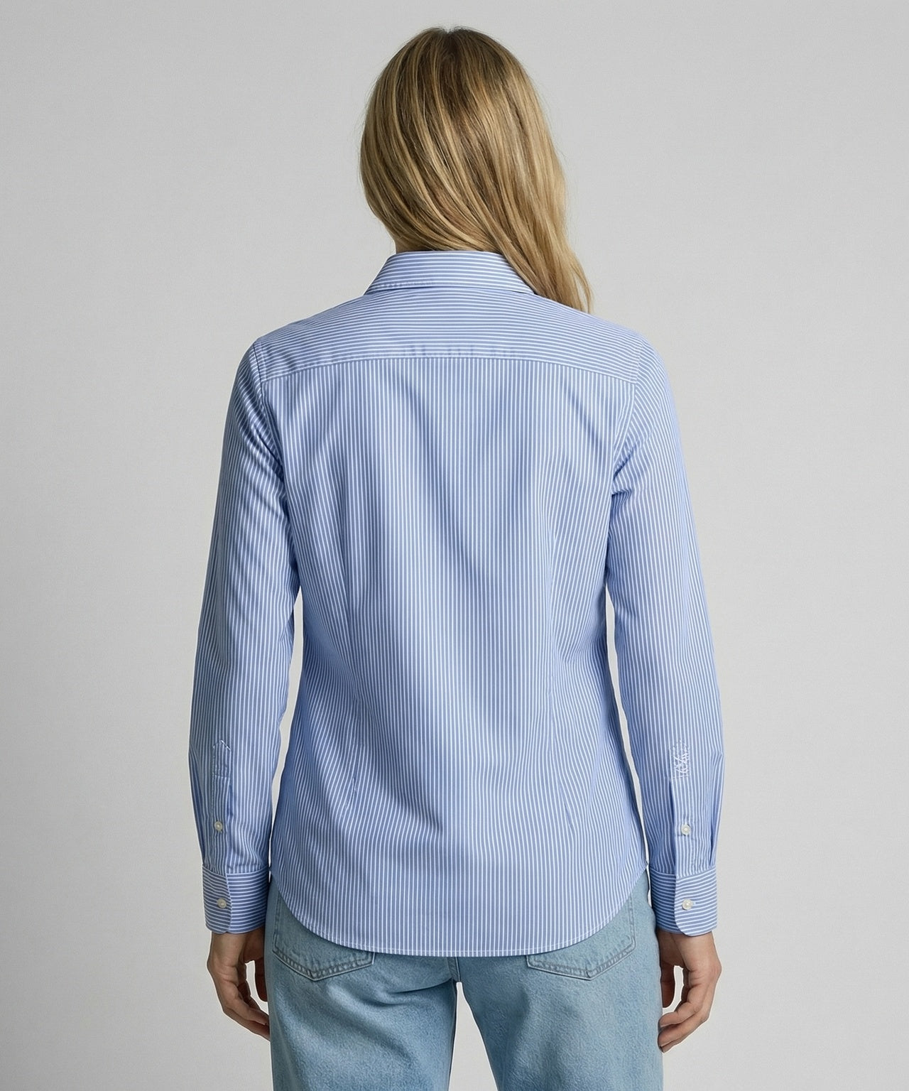 This striped poplin blouse is a fresh and timeless addition to your wardrobe. Made from 100% cotton, the fabric feels light and soft, ensuring comfortable wear all day long.