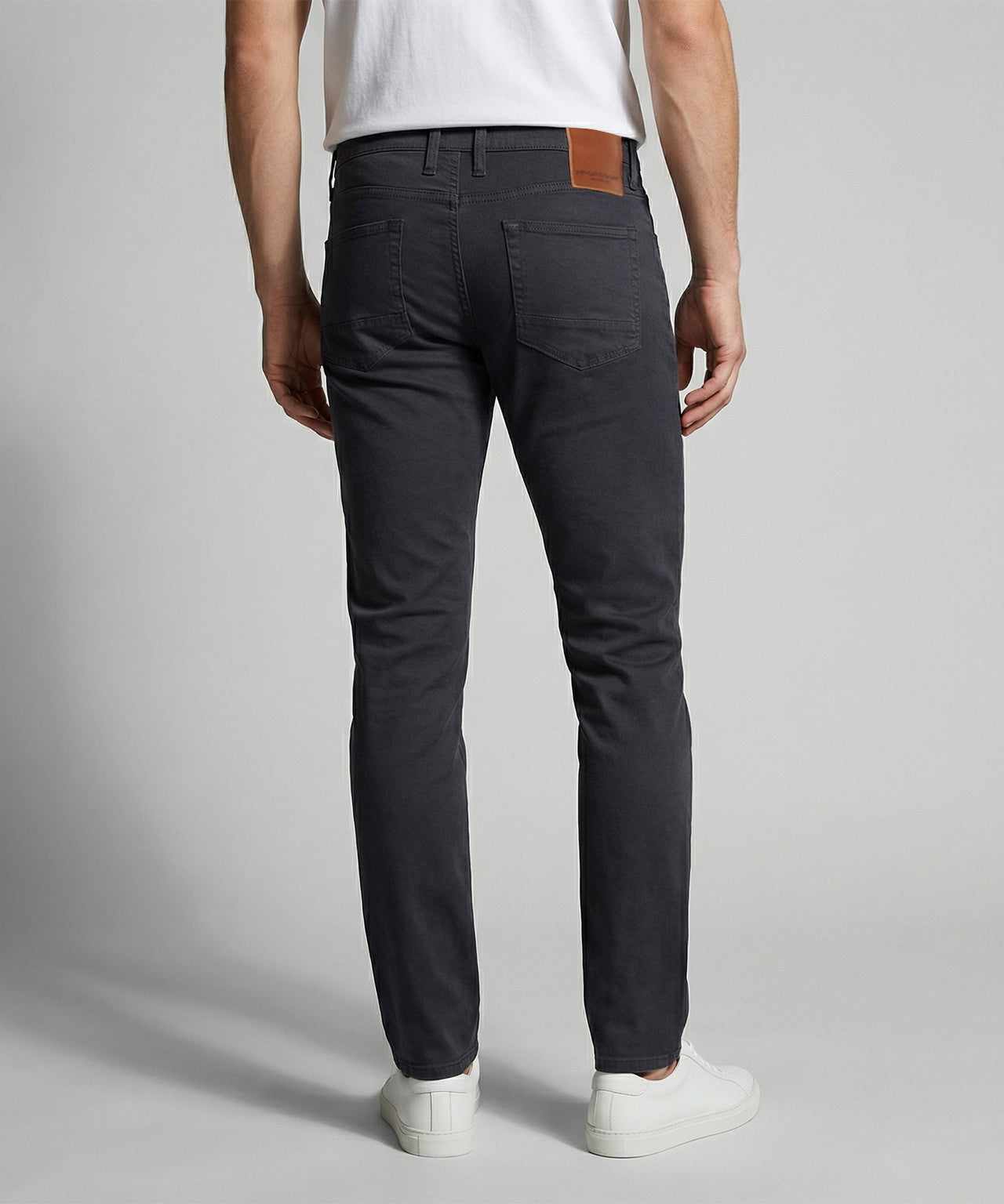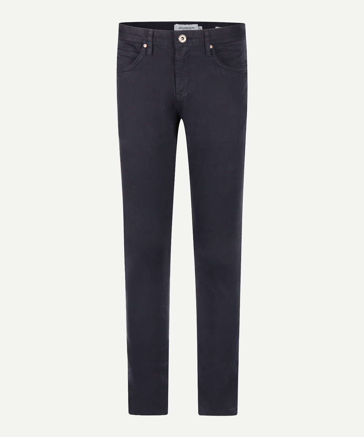 These slim-fit trousers are crafted from a premium cotton-elastane blend for a comfortable fit. Garment-dyed, they feature two side pockets, two back pockets, and a small coin pocket. The button closure and zip fly ensure practicality. The coin pocket features a subtle embroidered McGregor logo. Versatile and stylish trousers, suitable for both casual and smart-casual outfits.