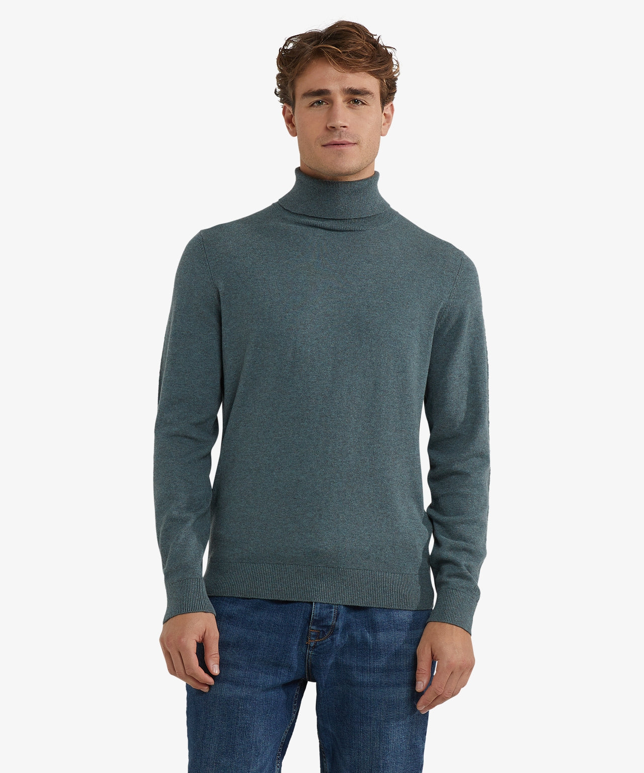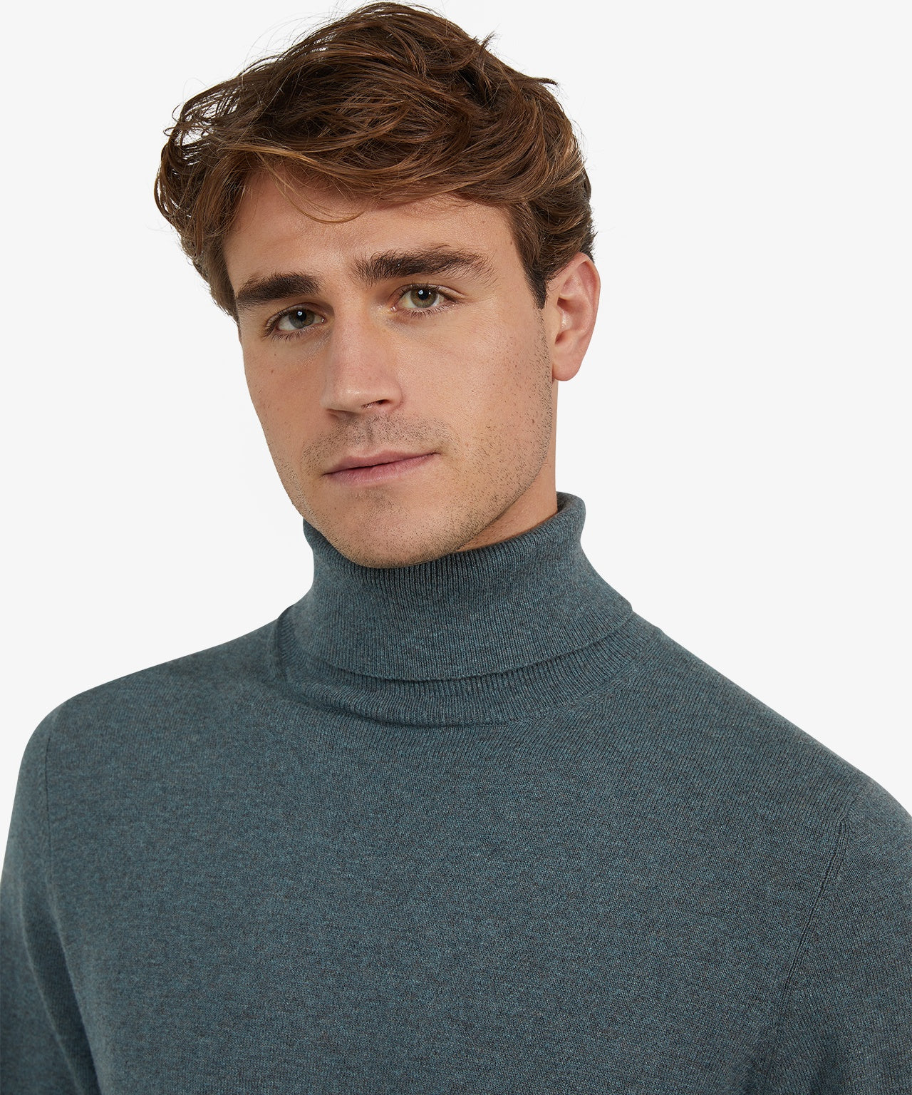 This turtleneck sweater is crafted from a premium blend of 70% cotton and 30% merino wool, for a soft and comfortable feel with a luxurious look. It has a regular fit, long sleeves, a ribbed turtleneck, and ribbed cuffs. A timeless and versatile piece that can be dressed up or down.