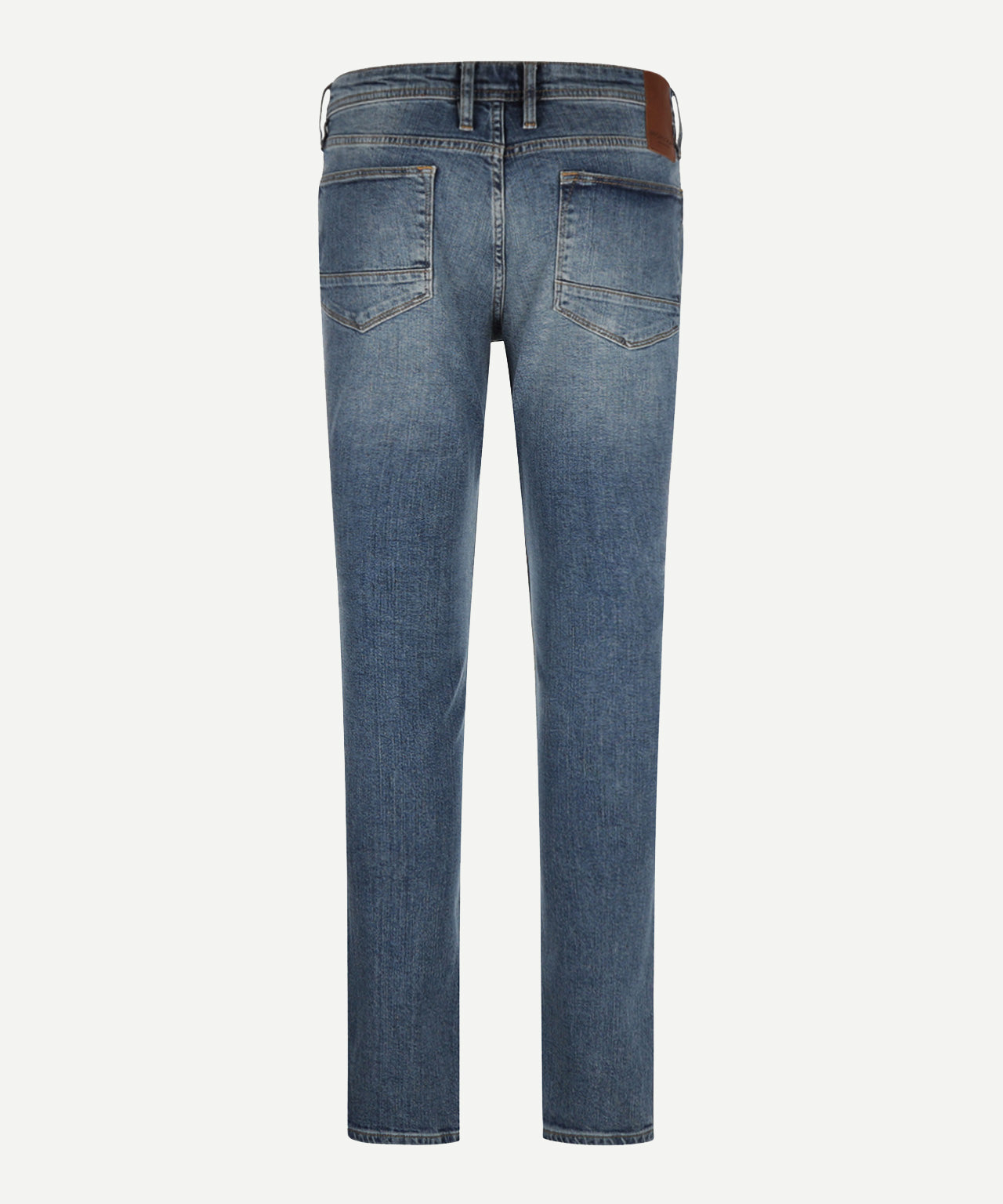 These slim-fit denim jeans are crafted from a premium cotton-elastane blend for a comfortable fit with a touch of stretch. They feature two side pockets, two back pockets, and a small coin pocket. The button closure and zip fly make them practical. The coin pocket features a subtle embroidered McGregor logo. A versatile and timeless denim, suitable for both casual and smart-casual outfits.