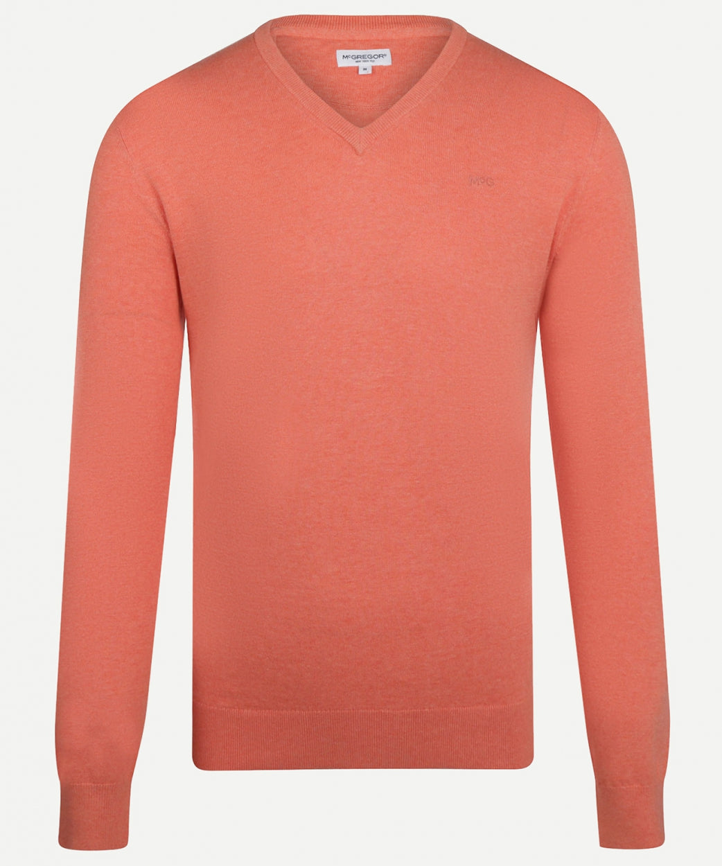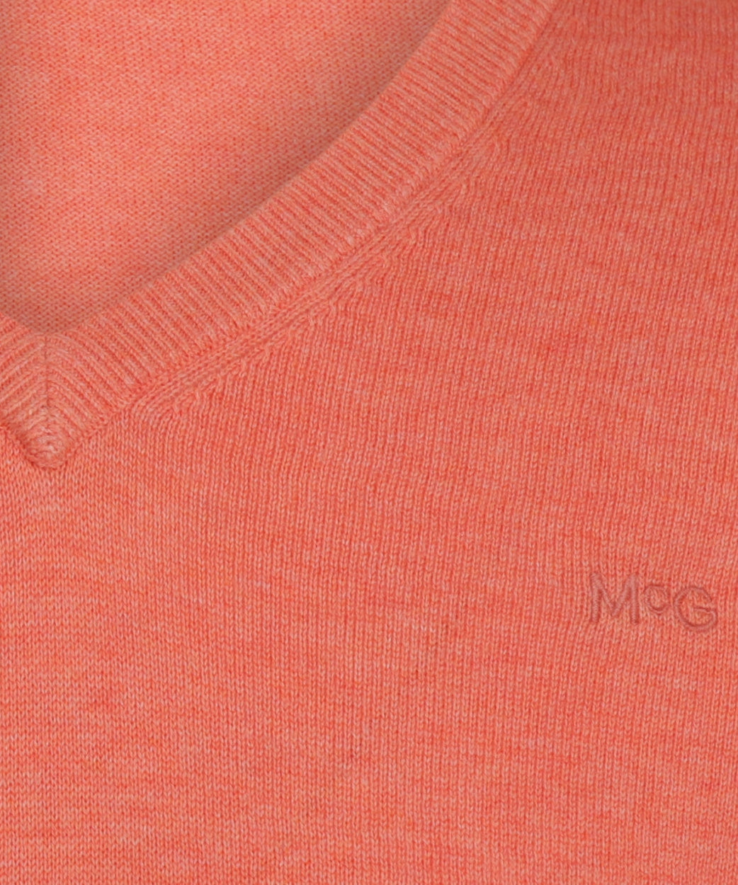This 100% cotton sweater features a V-neck and a subtle McG logo embroidered on the sleeve. The collar and cuffs have a ribbed finish.