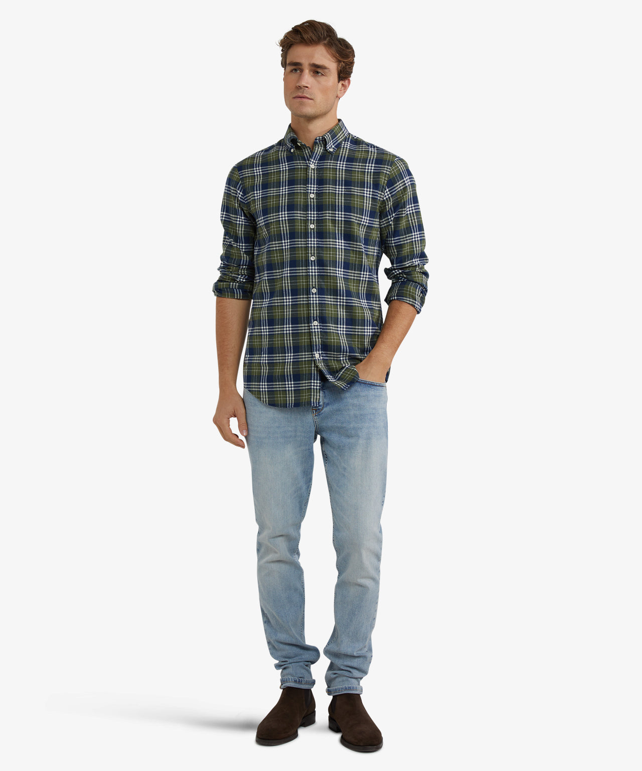 This shirt is made of 100% premium cotton and has a regular fit for comfortable everyday wear. It features long sleeves, a button-down collar, and a subtle McGregor logo on the chest. The multi-check pattern gives it a timeless and versatile look. Suitable for both casual and smart-casual outfits.