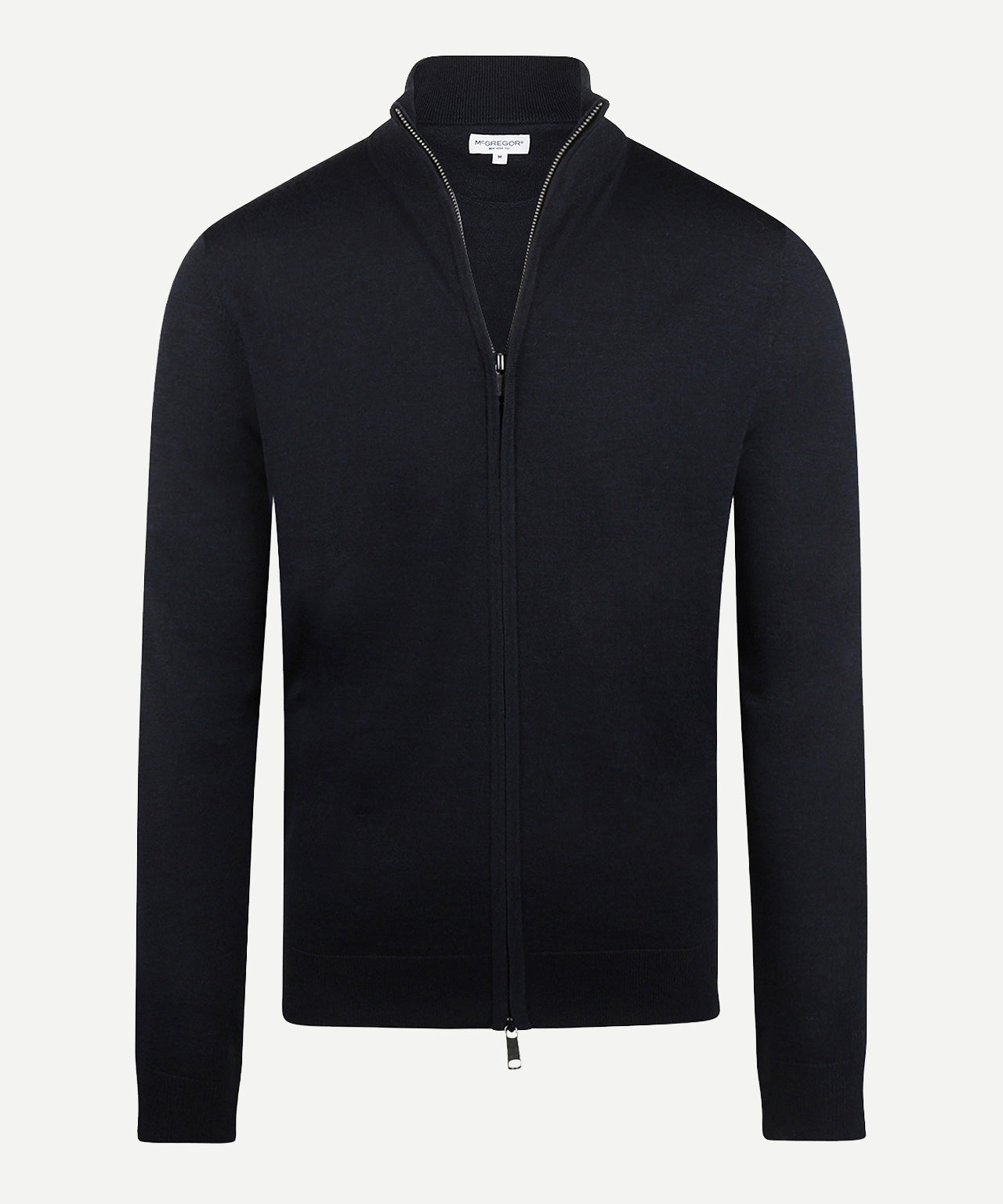 Dit ritsvest is vervaardigd uit 100% extra fijne merinowol van hoogwaardige kwaliteit, voor een zacht, licht en comfortabel draaggevoel. Het vest heeft een regular fit, lange mouwen, een ribgebreide ronde hals en ribgebreide manchetten. De metalen McGregor-ritssluiting en het subtiele McGregor-logo op de borst geven een verfijnde, tijdloze uitstraling. Een veelzijdig item dat zowel casual als net gedragen kan worden.