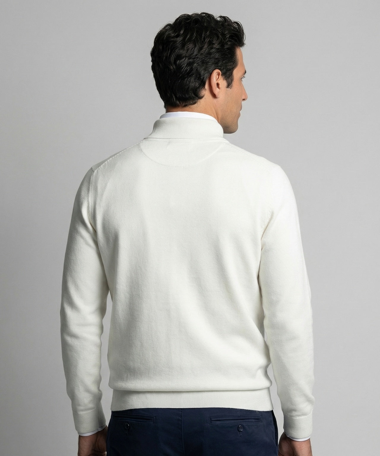 Crafted from a premium blend of 95% cotton and 5% cashmere, this half-zip sweater offers a soft and comfortable feel. It has a regular fit, long sleeves, and a stand-up collar with a zipper. The ribbed cuffs and hem provide a neat finish and a beautiful fit. Thanks to the cotton-cashmere blend, the sweater feels lightweight and luxurious.