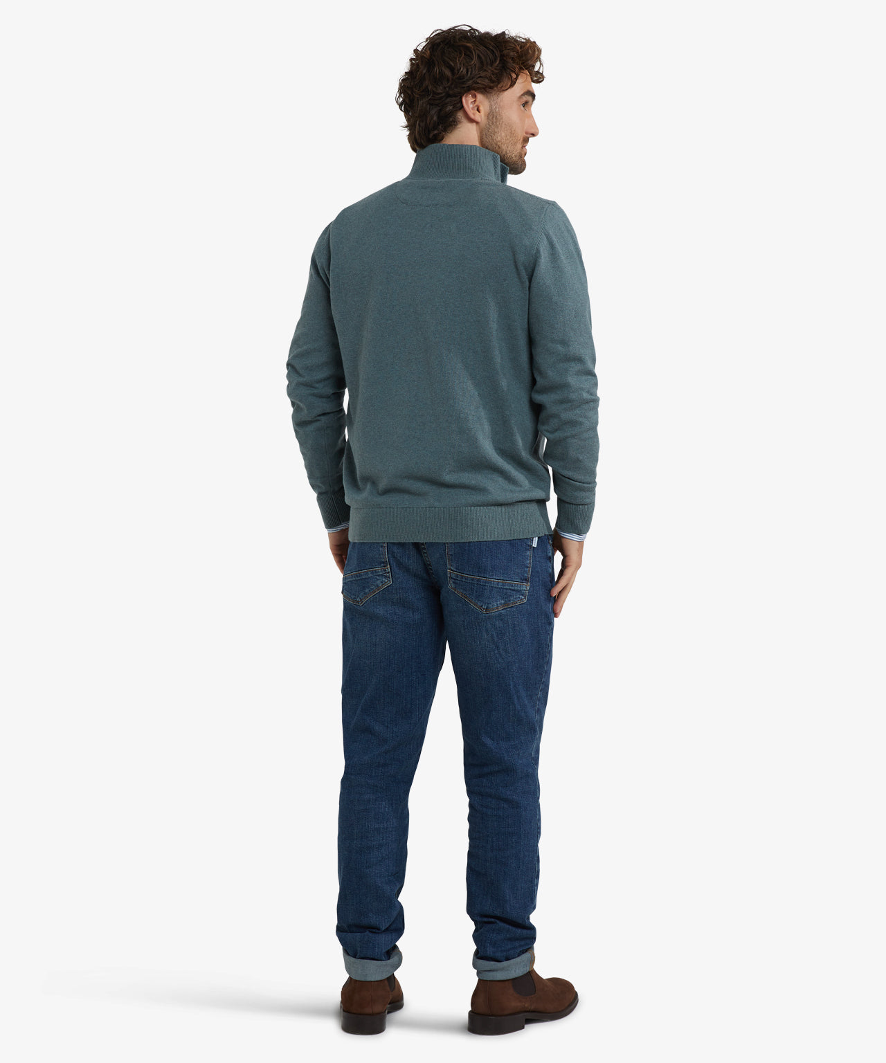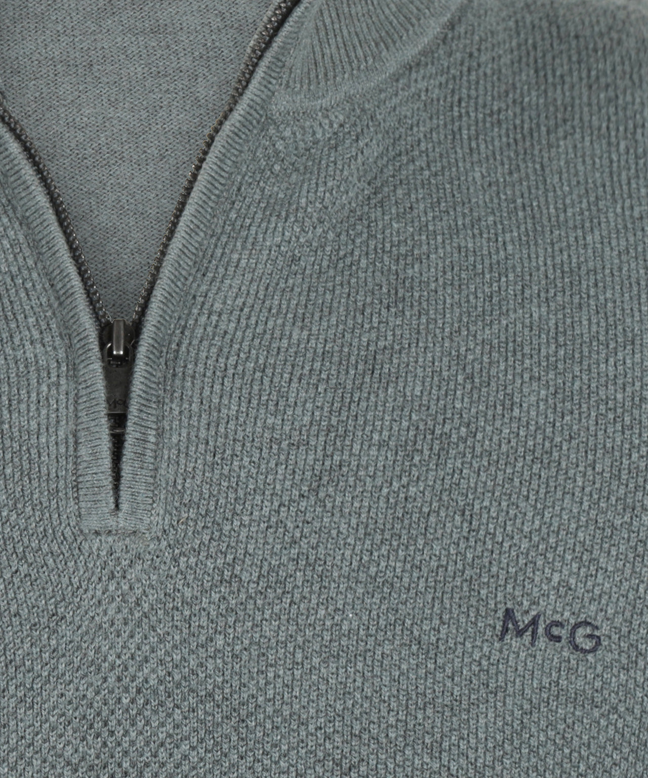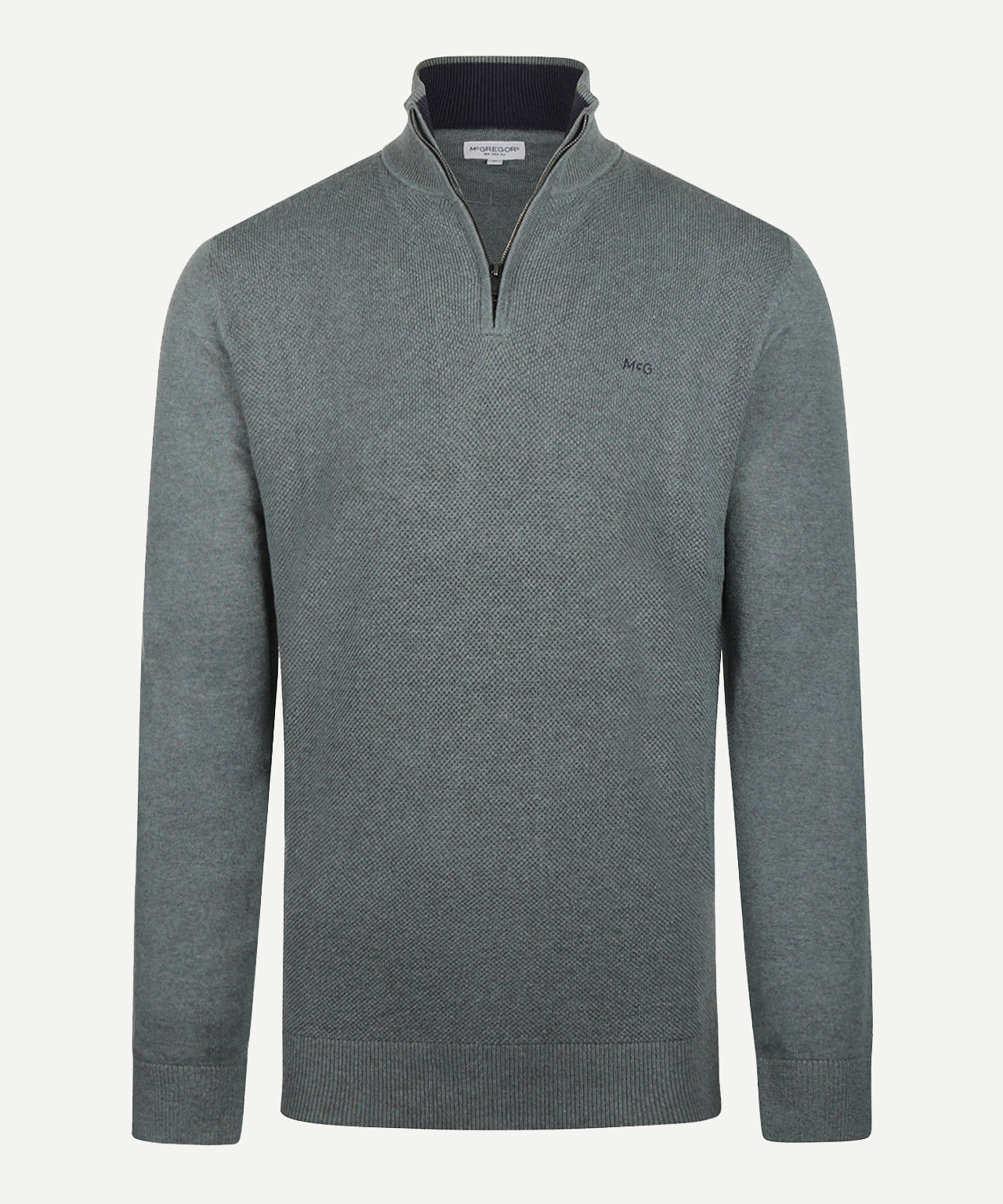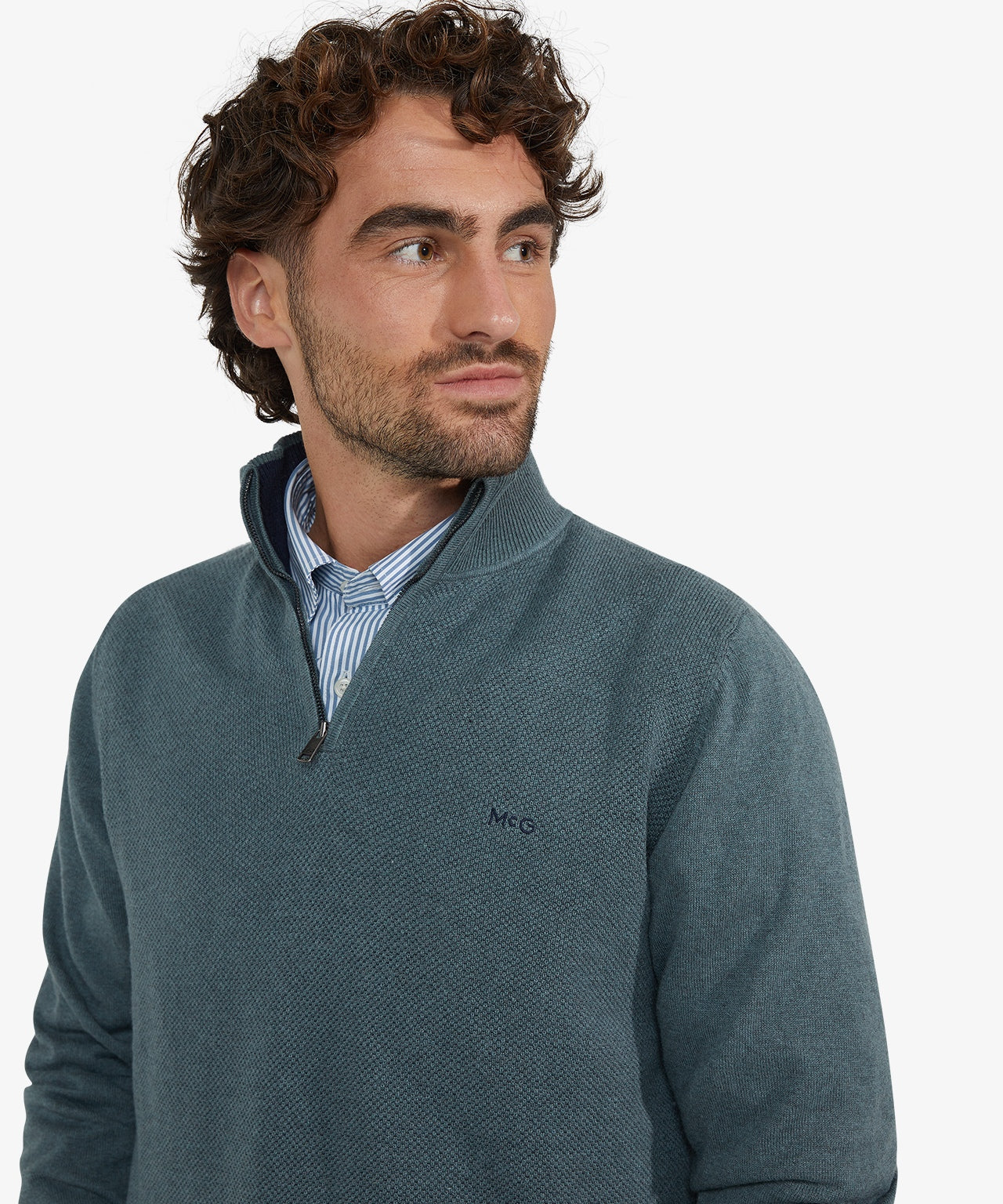 This half-zip sweater is crafted from a premium blend of 70% cotton and 30% merino wool, creating a soft, comfortable, and luxurious feel. It has a regular fit, long sleeves, a ribbed turtleneck, and ribbed cuffs. A subtle McGregor logo is featured on the chest. A versatile and stylish piece that can be dressed up or down.