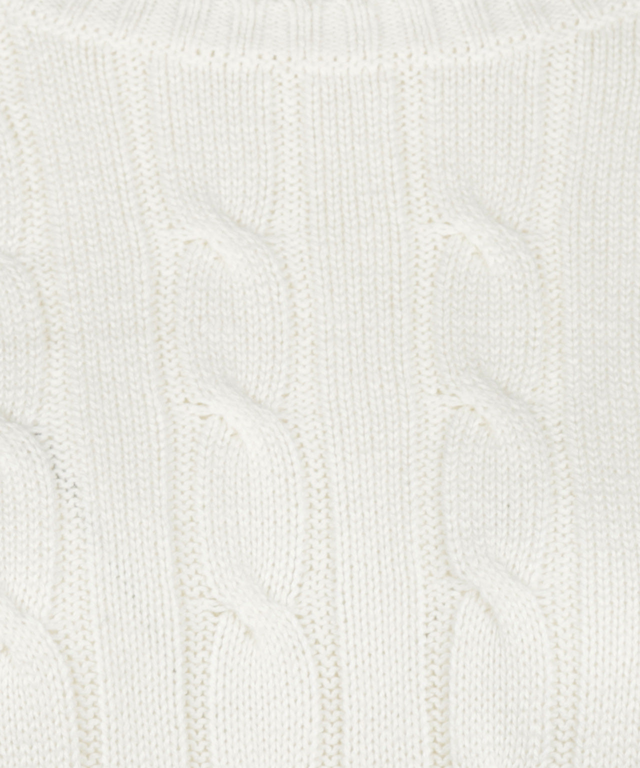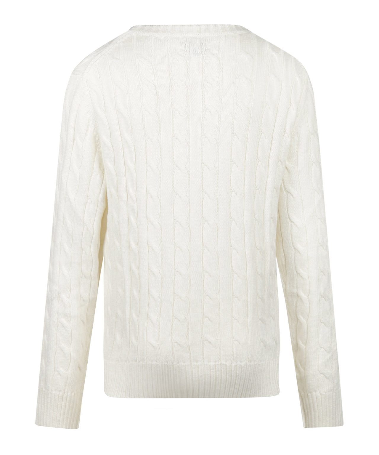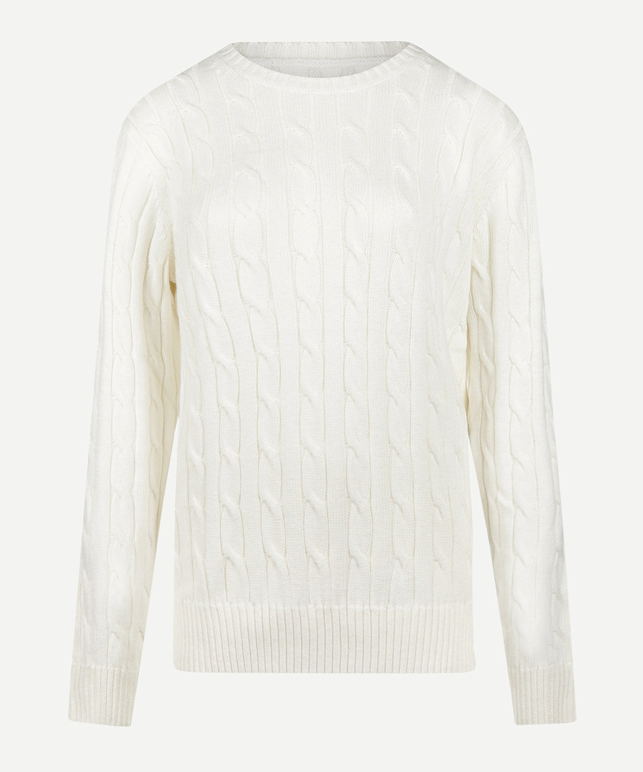 Crafted from a premium blend of 95% cotton and 5% cashmere, this crew neck sweater offers a soft and comfortable feel. The combination of materials creates a lightweight and luxurious feel, ideal for everyday wear. The classic cable knit pattern gives this sweater a timeless and stylish look. The ribbed cuffs and crew neck create a neat finish and a beautiful fit. A versatile and refined piece that can be worn stylishly season after season.