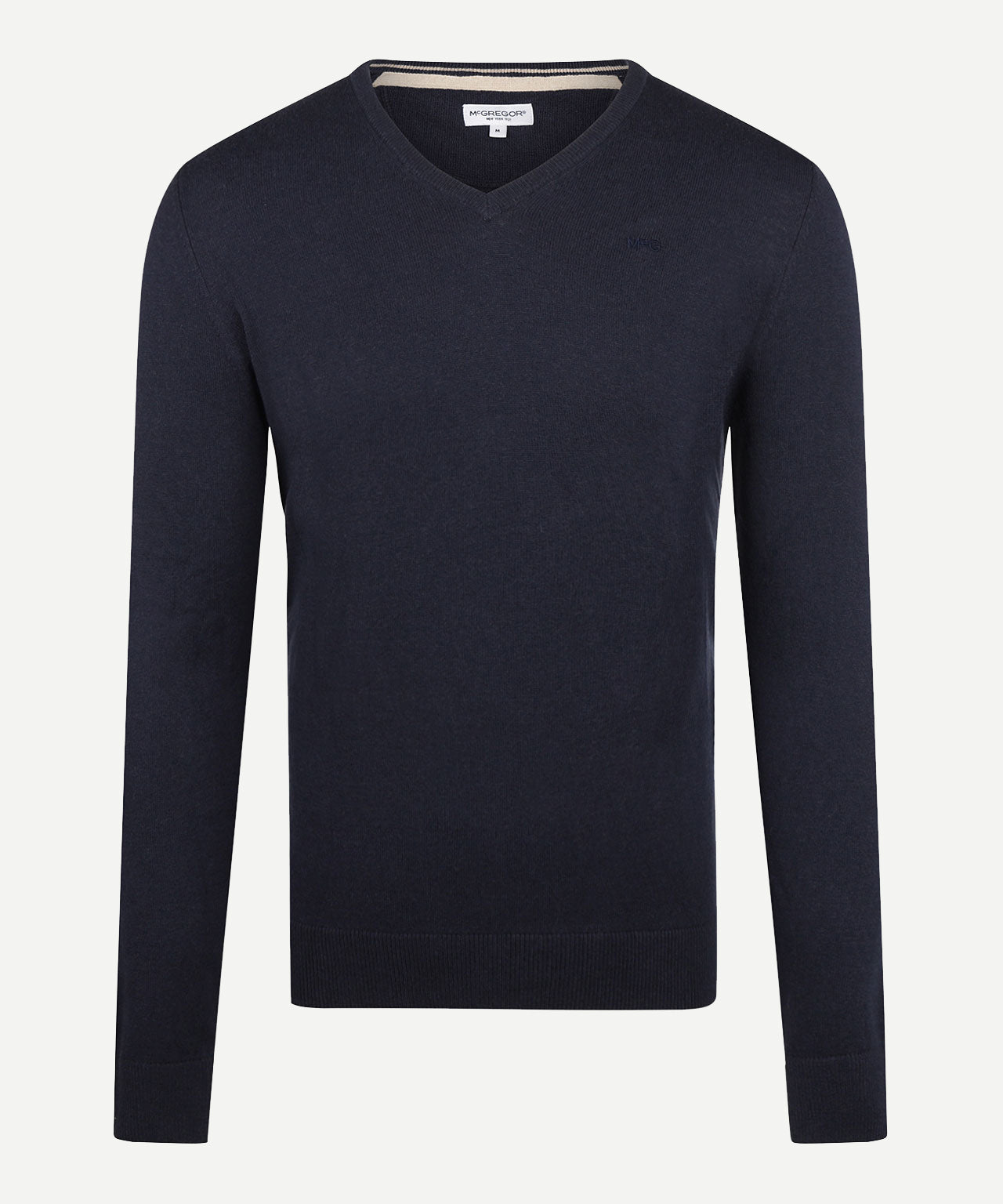 This sweater is crafted from a premium blend of cotton and merino wool for a soft and comfortable feel. It features long sleeves, a ribbed V-neck, and ribbed cuffs. A subtle McGregor logo is featured on the chest. A timeless and versatile sweater, perfect for both casual and smart-casual looks.