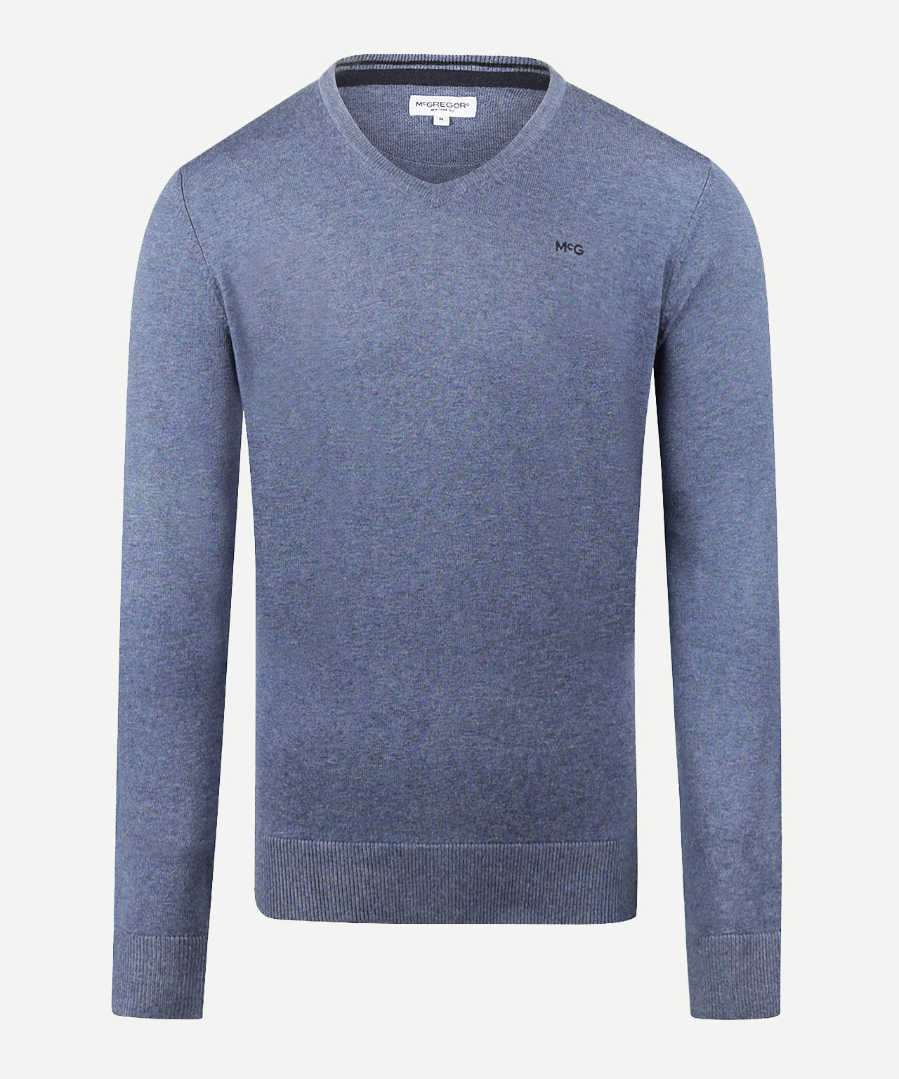 This sweater is crafted from a premium blend of cotton and merino wool for a soft and comfortable feel. It features long sleeves, a ribbed V-neck, and ribbed cuffs. A subtle McGregor logo is featured on the chest. A timeless and versatile sweater, perfect for both casual and smart-casual looks.