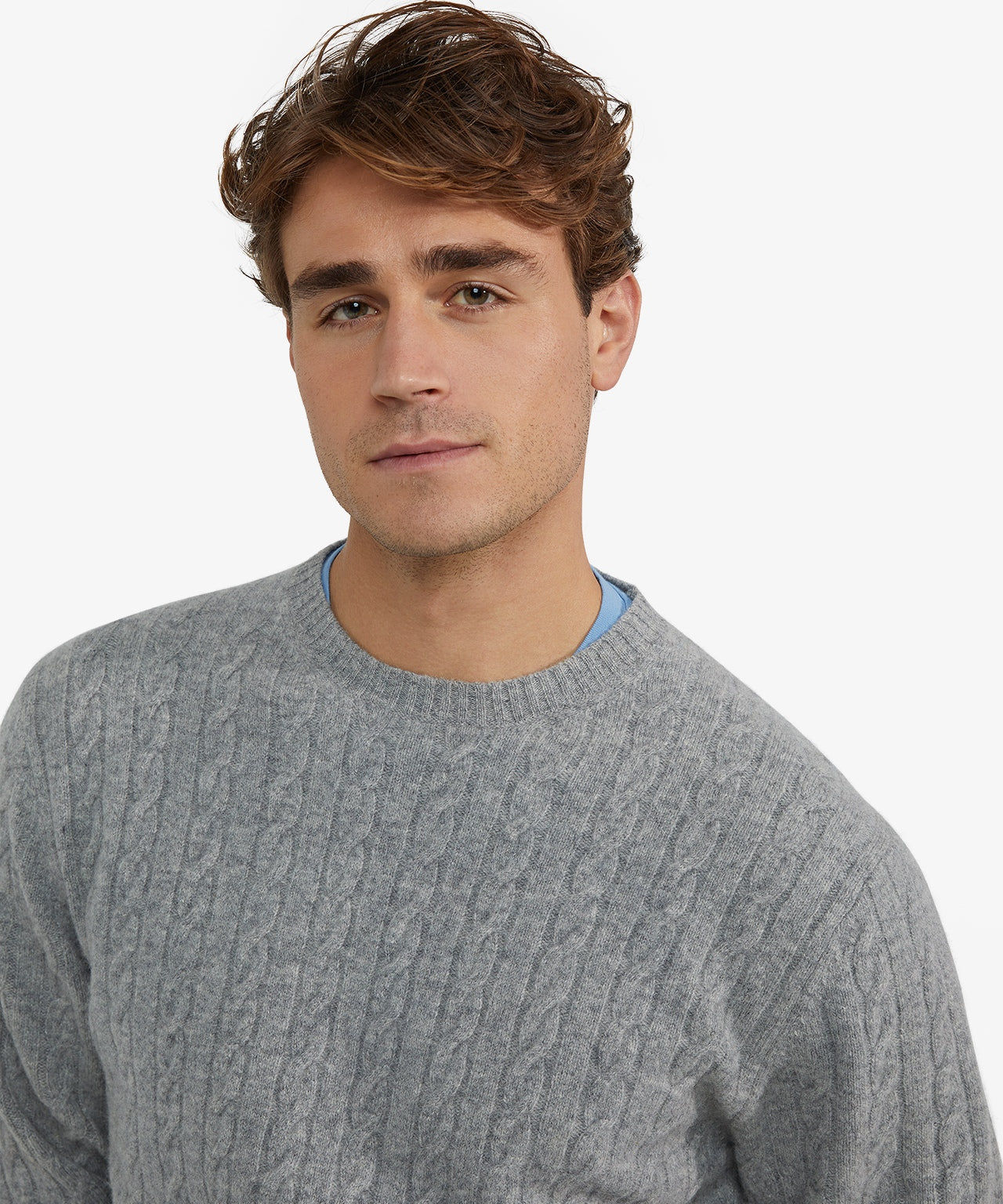 This crew neck sweater is crafted from 100% premium lambswool for a soft and luxurious feel. It has a regular fit, long sleeves, a ribbed crew neck, and ribbed cuffs. The classic cable knit gives it a timeless and stylish look. A versatile and durable piece for any wardrobe.