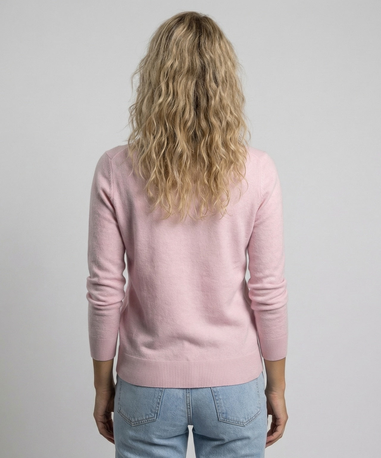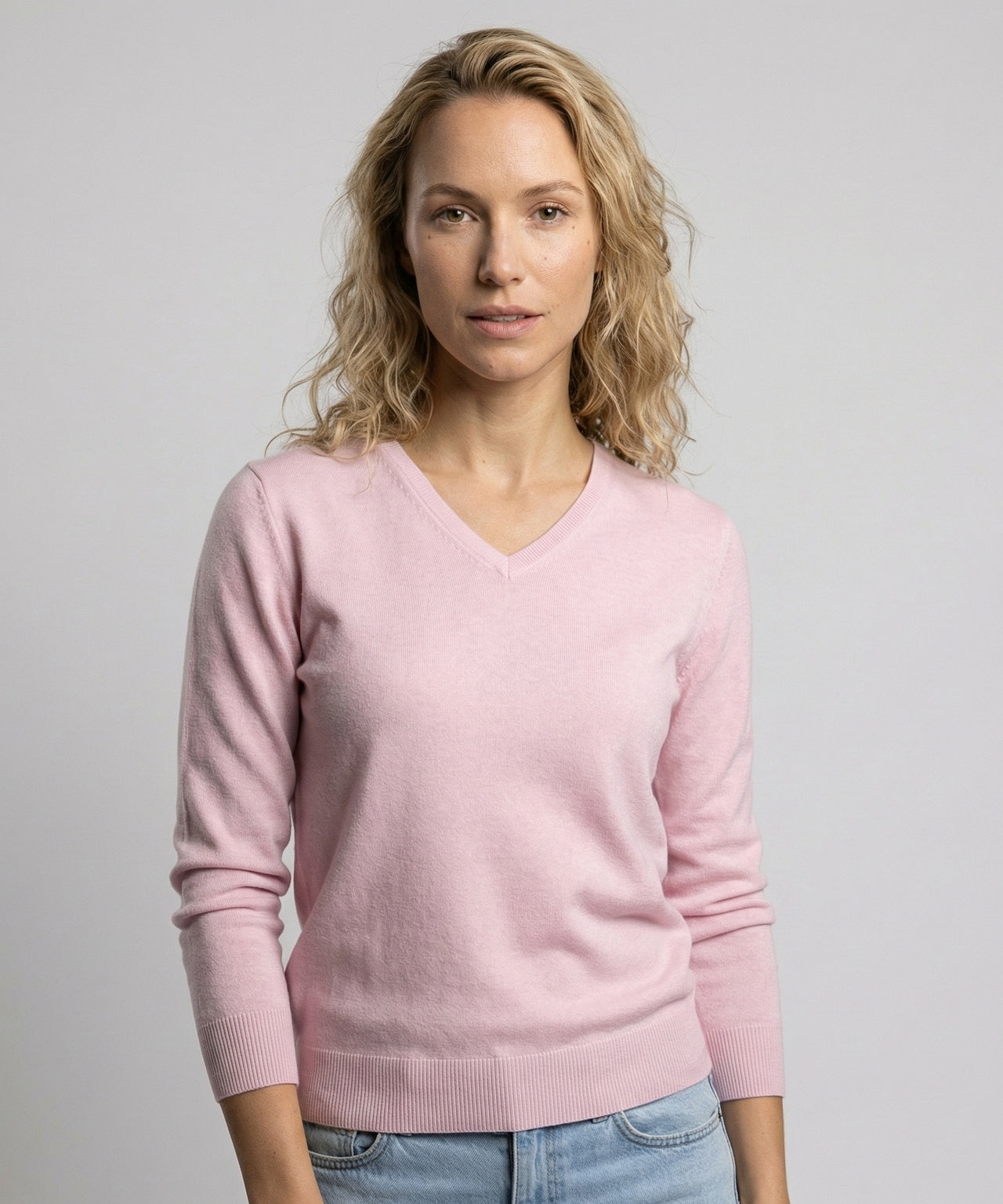 This women's V-neck sweater is crafted from a premium cotton-cashmere blend, offering a soft and comfortable feel. The material feels lightweight and luxurious, while ensuring optimal comfort throughout the day. The sweater features long sleeves, a ribbed V-neck, and ribbed cuffs for a refined finish. Its timeless design makes it stylish to wear season after season.