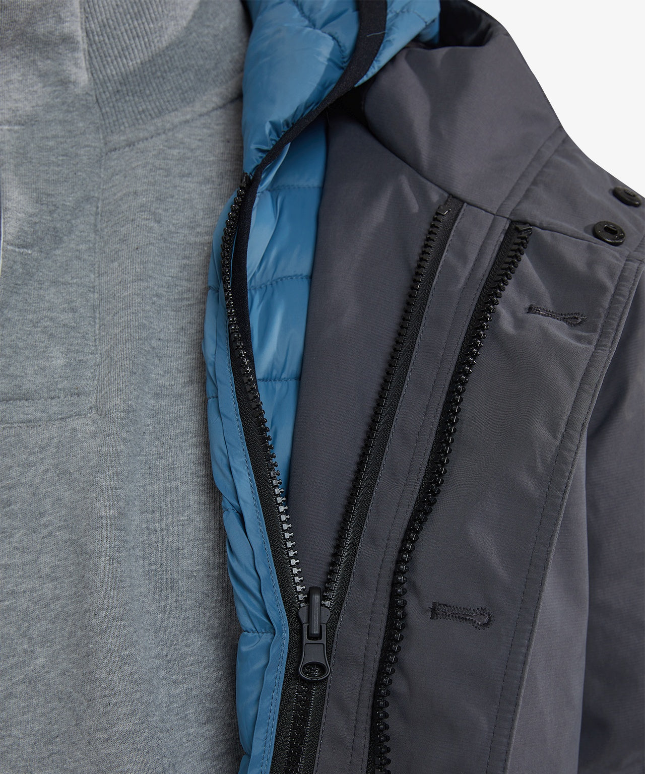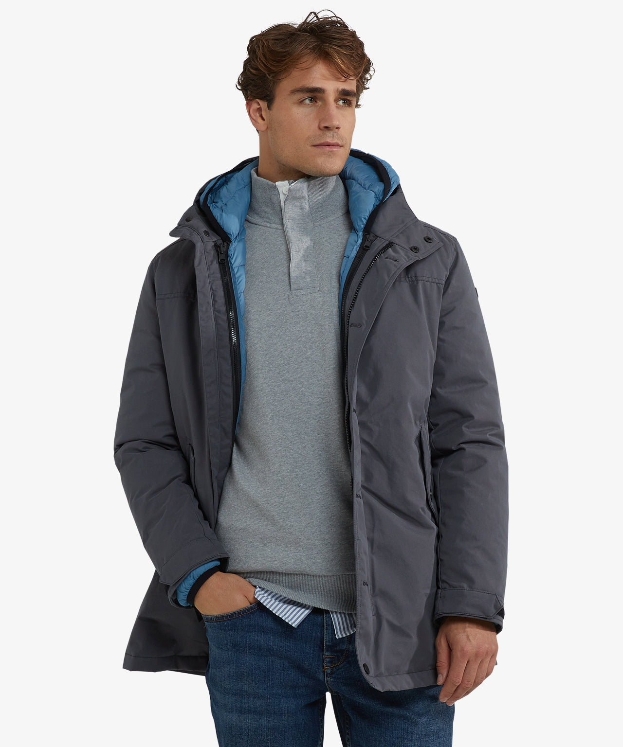 Deze 2-in-1 parka is voorzien van een ritssluiting met knoopsluiting, capuchon, handwarmerzakken, reguliere steekzakken met knopen en een praktische hanglus. De uitneembare binnenvoering kan los gedragen worden, waardoor de jas veelzijdig inzetbaar is bij verschillende weersomstandigheden. De jas is gemaakt van 90% polyester en 10% nylon in regular fit, wat zorgt voor comfort en bewegingsvrijheid. De 2-in-1 Parka Jas combineert praktische details met een tijdloze uitstraling, ideaal voor dagelijks gebruik.