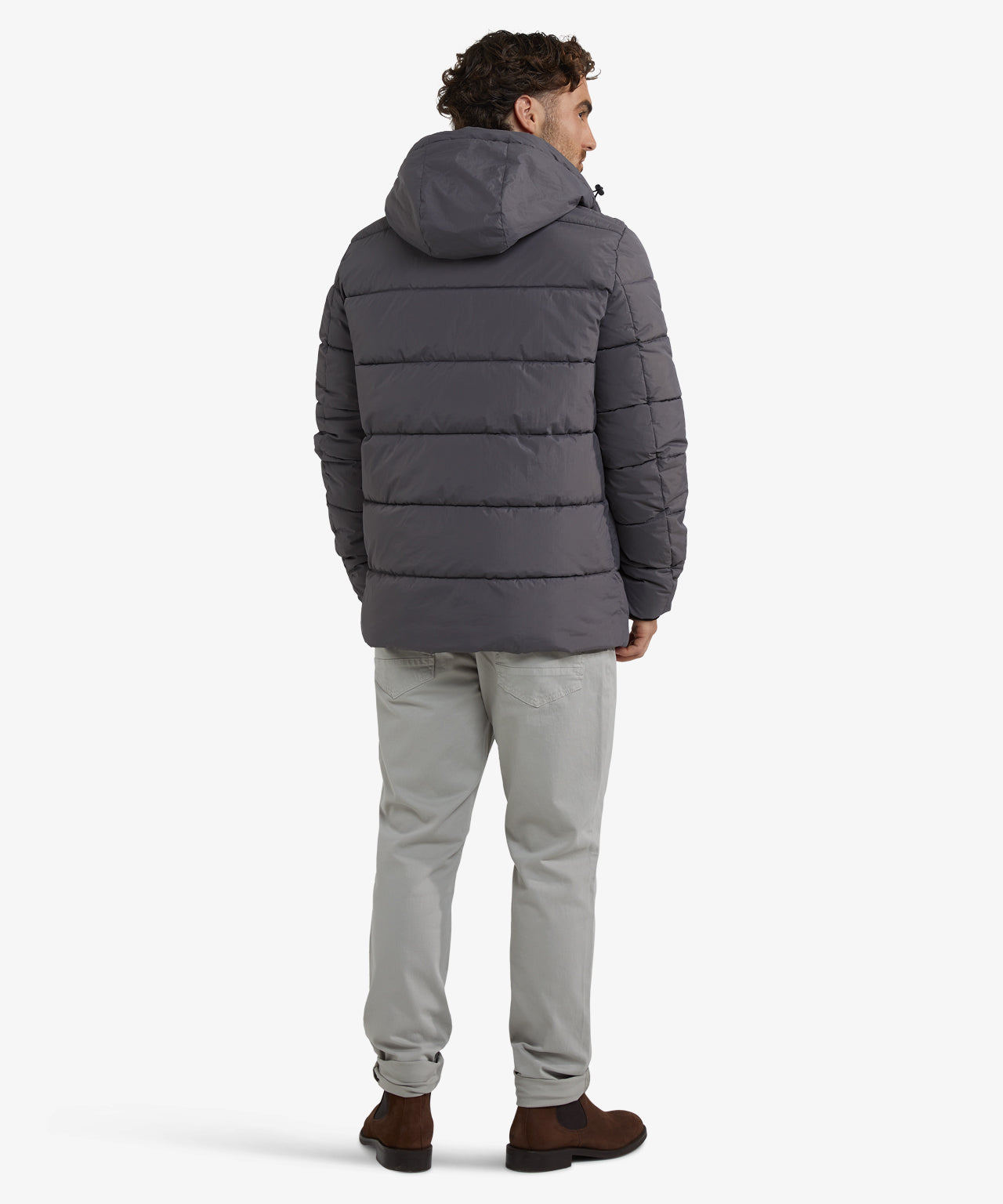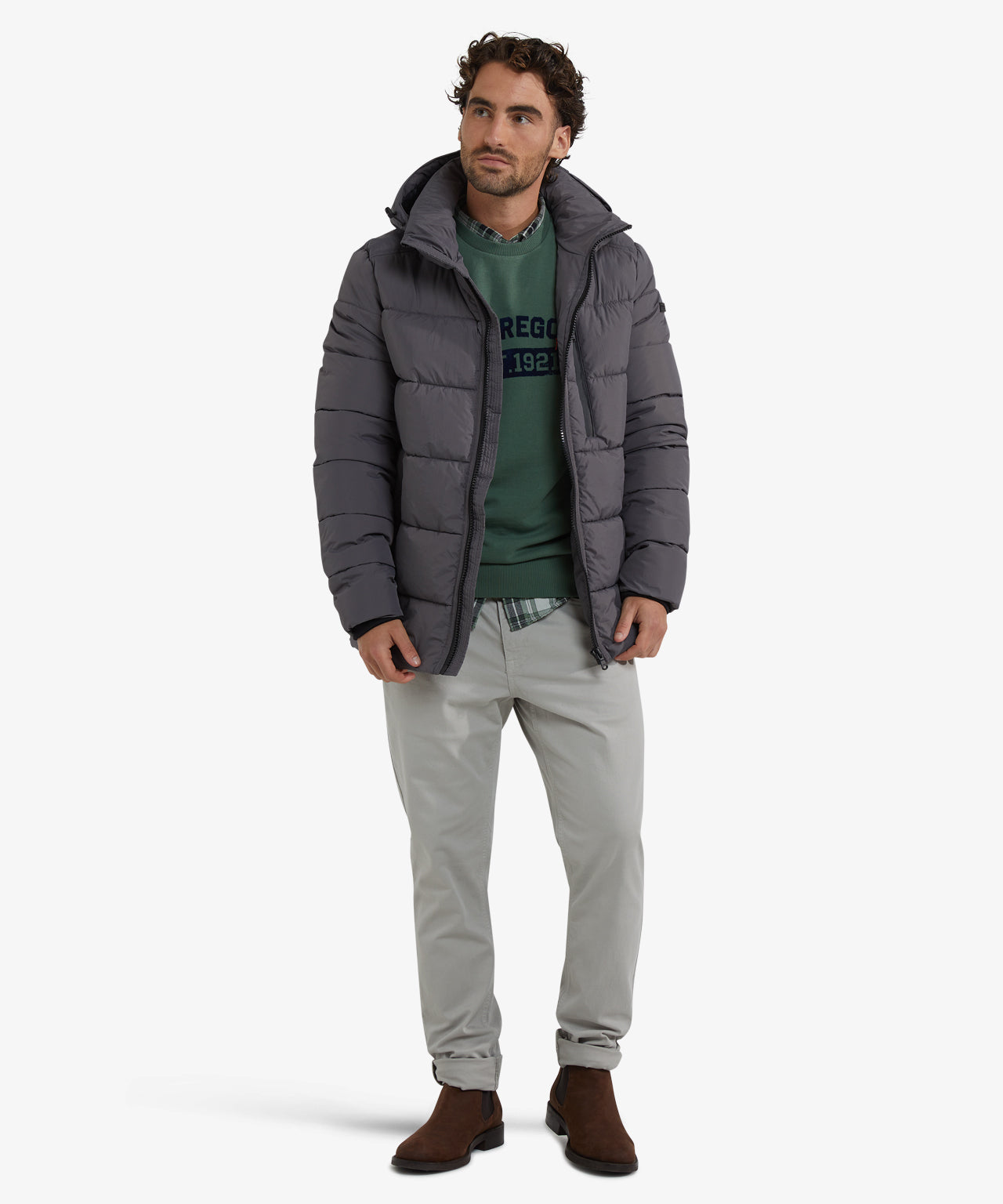 Een moderne interpretatie van de klassieke bomber. Dit model is voorzien van een ritssluiting, een borstzak met ritssluiting en een handige hanglus, gecombineerd met een capuchon voor extra functionaliteit. Gemaakt van 100% polyester in regular fit, wat zorgt voor comfort en een lichte bescherming tegen wind en weer. Het ontwerp biedt een sportieve uitstraling met praktische details, geschikt voor dagelijks gebruik.