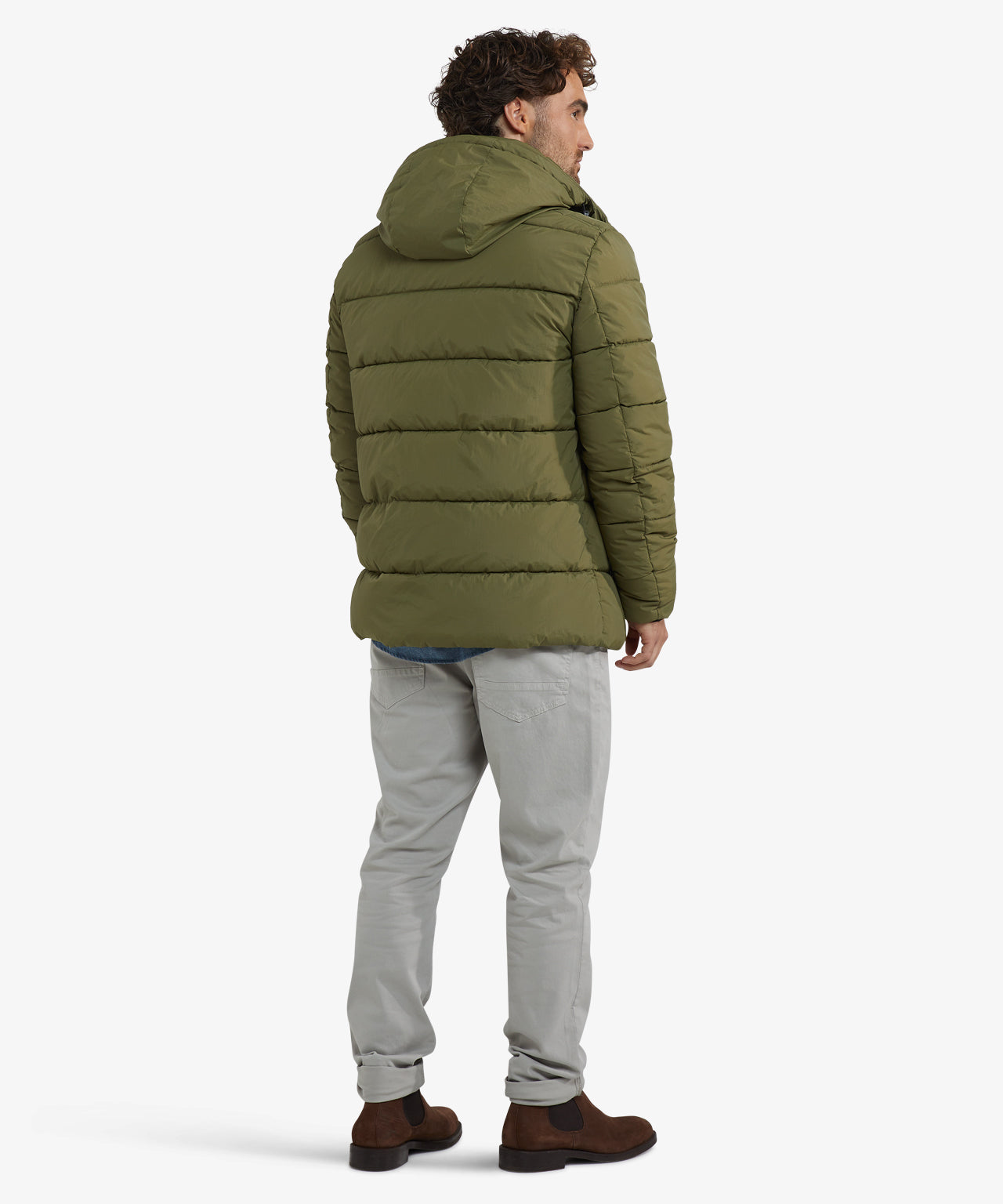 Een moderne interpretatie van de klassieke bomber. Dit model is voorzien van een ritssluiting, een borstzak met ritssluiting en een handige hanglus, gecombineerd met een capuchon voor extra functionaliteit. Gemaakt van 100% polyester in regular fit, wat zorgt voor comfort en een lichte bescherming tegen wind en weer. Het ontwerp biedt een sportieve uitstraling met praktische details, geschikt voor dagelijks gebruik.