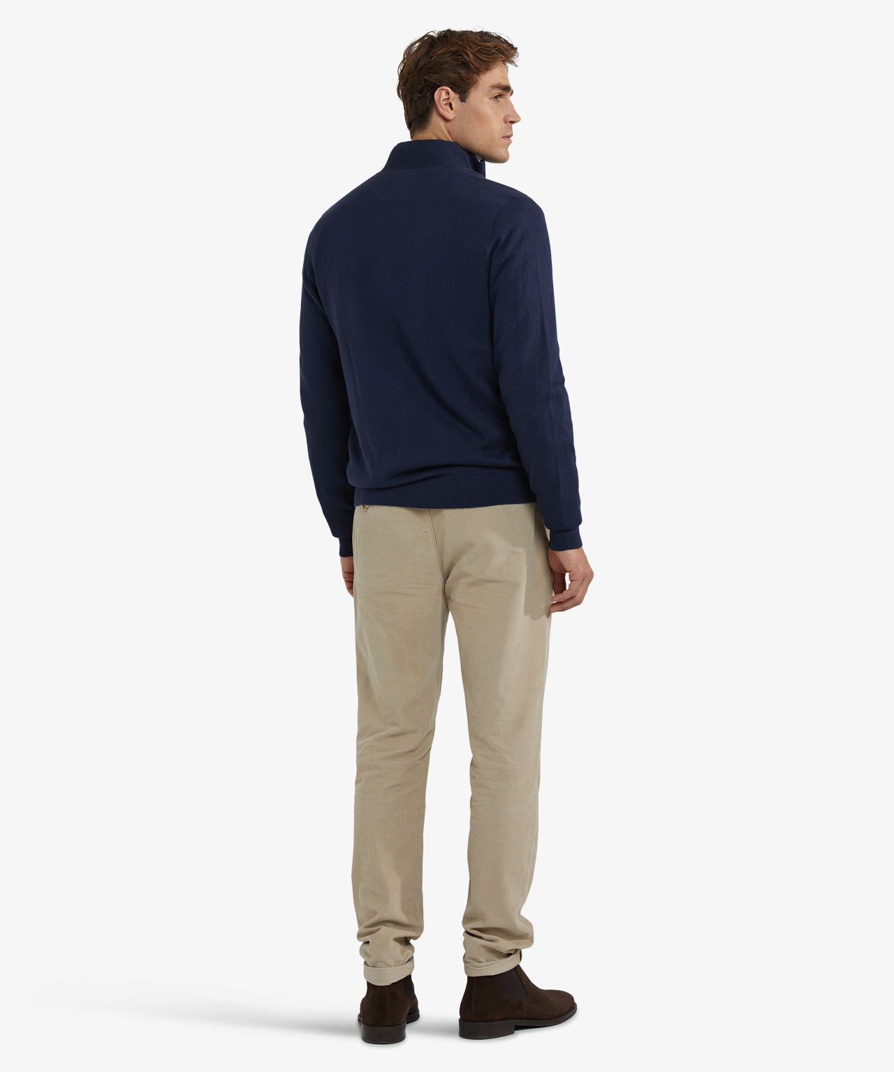 Dit ritsvest is gemaakt van een hoogwaardige mix van 70% katoen en 30% merinowol, voor een zachte, comfortabele en luxueuze draagervaring. Het vest heeft een regular fit, lange mouwen, een ribgebreide ronde hals en ribgebreide manchetten. De metalen ritssluiting en het subtiele McGregor-logo op de borst geven een verfijnde uitstraling. Een veelzijdig en stijlvol item voor zowel casual als nettere looks