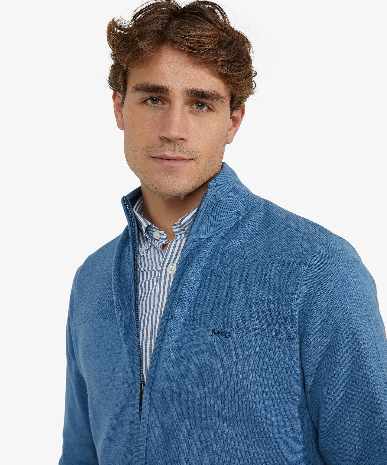Dit ritsvest is gemaakt van een hoogwaardige mix van 70% katoen en 30% merinowol, voor een zachte, comfortabele en luxueuze draagervaring. Het vest heeft een regular fit, lange mouwen, een ribgebreide ronde hals en ribgebreide manchetten. De metalen ritssluiting en het subtiele McGregor-logo op de borst geven een verfijnde uitstraling. Een veelzijdig en stijlvol item voor zowel casual als nettere looks