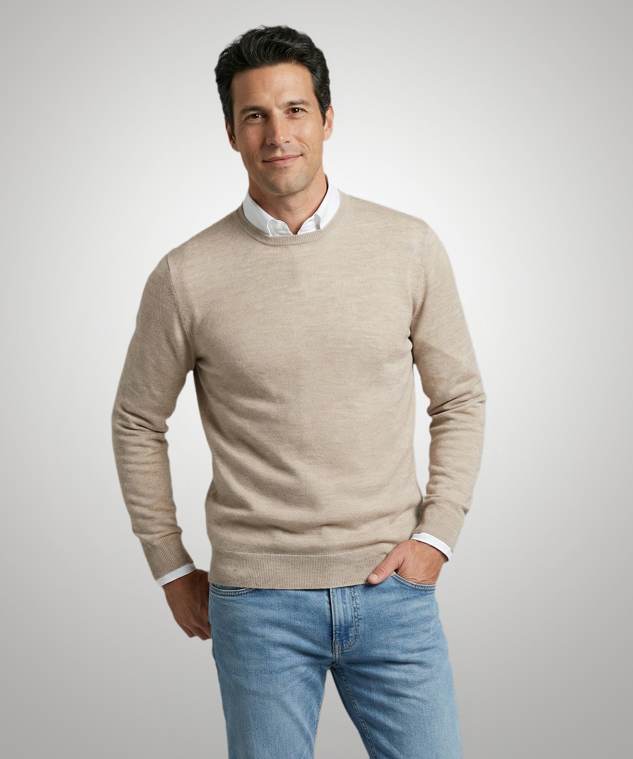 Deze ronde hals trui is gemaakt van 100% extra fine merinowol en biedt een zachte en luxe draagervaring. De trui heeft een regular fit, lange mouwen en een ribgebreide ronde hals met ribgebreide boorden voor een nette afwerking. Dankzij de fijne merinokwaliteit is de trui licht, ademend en comfortabel om te dragen.