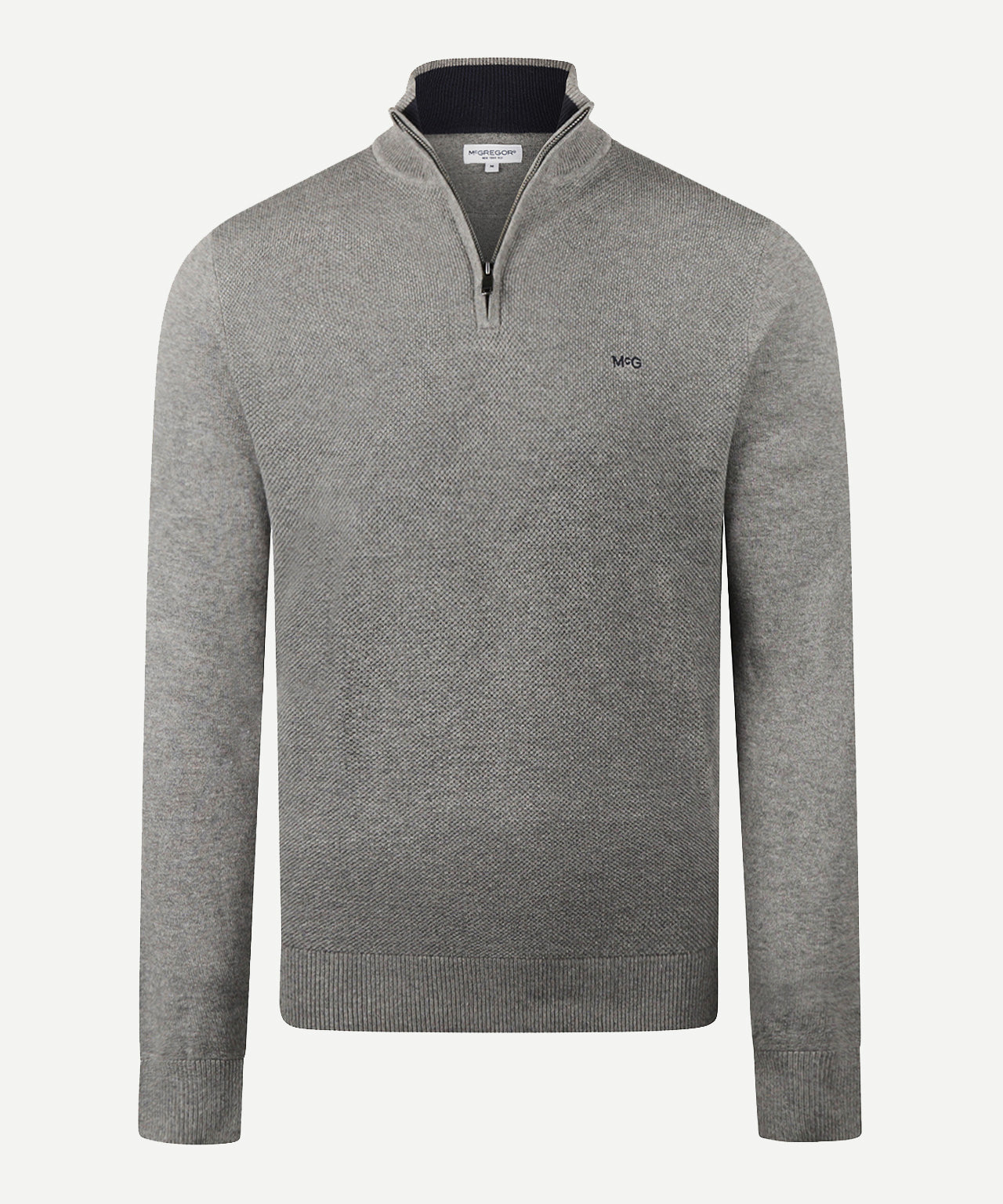 Deze half-zip trui is vervaardigd uit een hoogwaardige mix van 70% katoen en 30% merinowol, wat zorgt voor een zachte, comfortabele en luxueuze draagervaring. De trui heeft een regular fit, lange mouwen, een ribgebreide ritscol en ribgebreide manchetten. Op de borst bevindt zich een subtiel McGregor-logo. Een veelzijdig en stijlvol item dat zowel casual als netjes gedragen kan worden.