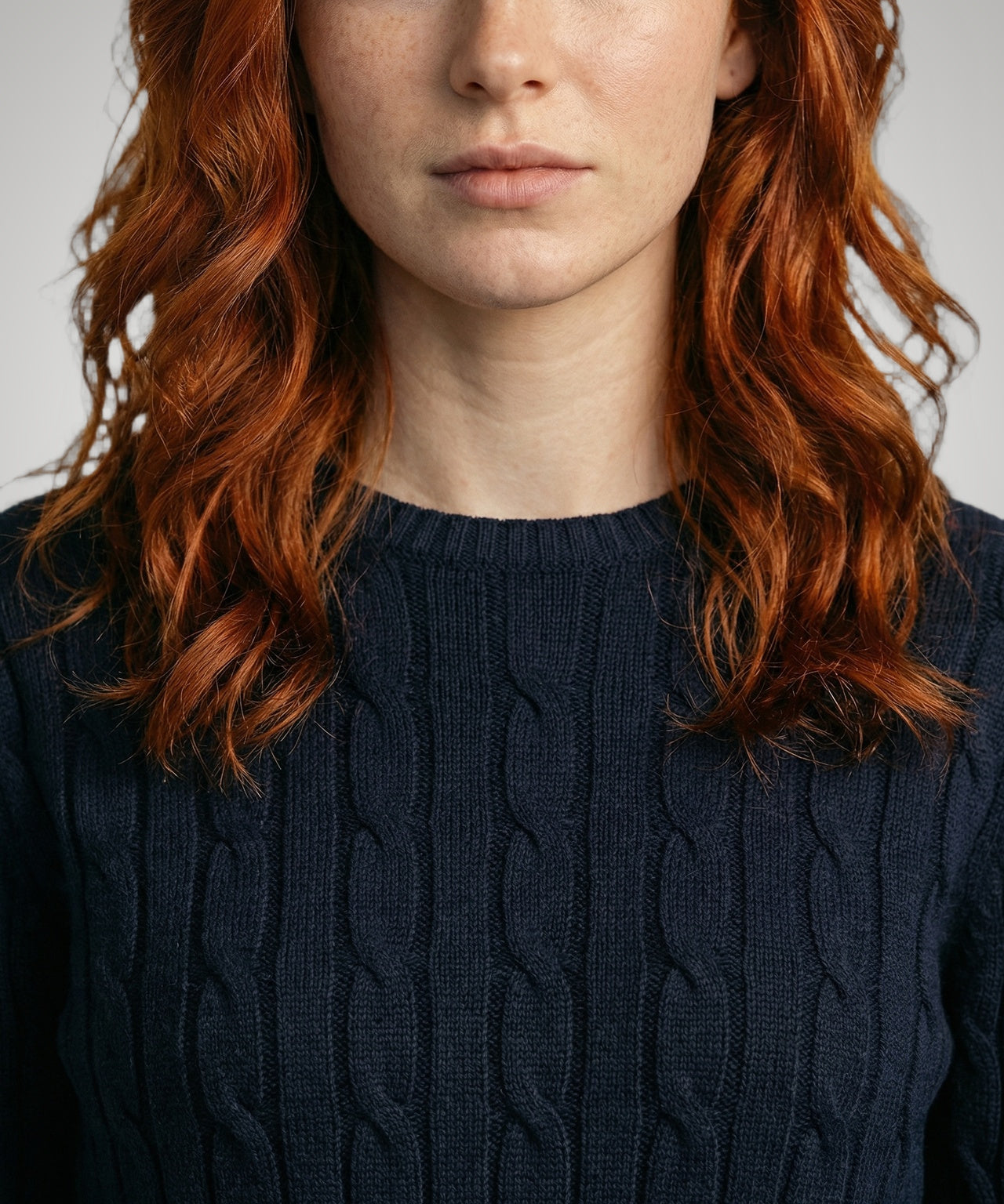 Trui Kabelpatroon Katoen-Kasjmier Ronde Hals