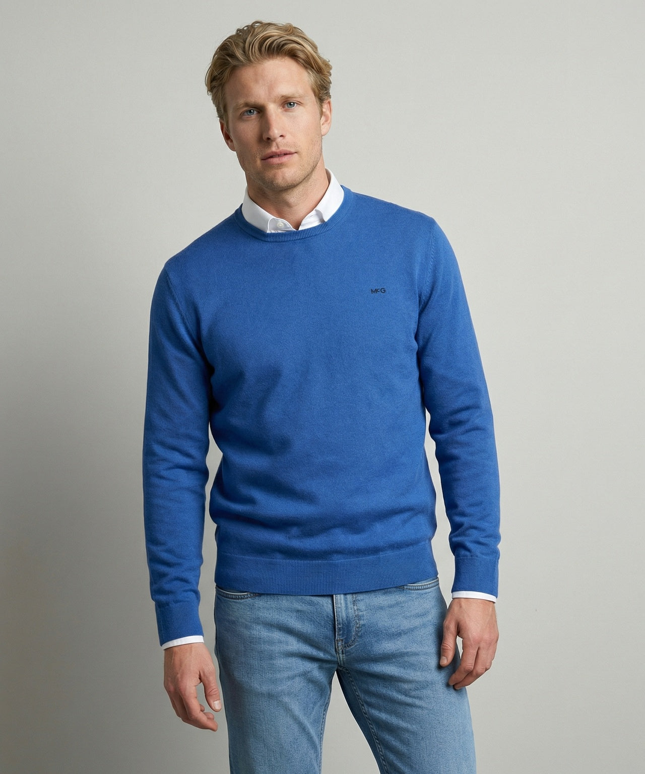 Deze trui is gemaakt van een hoogwaardige mix van katoen en kasjmier, voor een zachte en comfortabele draagervaring. Het item heeft lange mouwen, een ribgebreide ronde hals en ribgebreide manchetten. Op de borst bevindt zich een subtiel McGregor-logo. Een tijdloze en veelzijdige trui.
