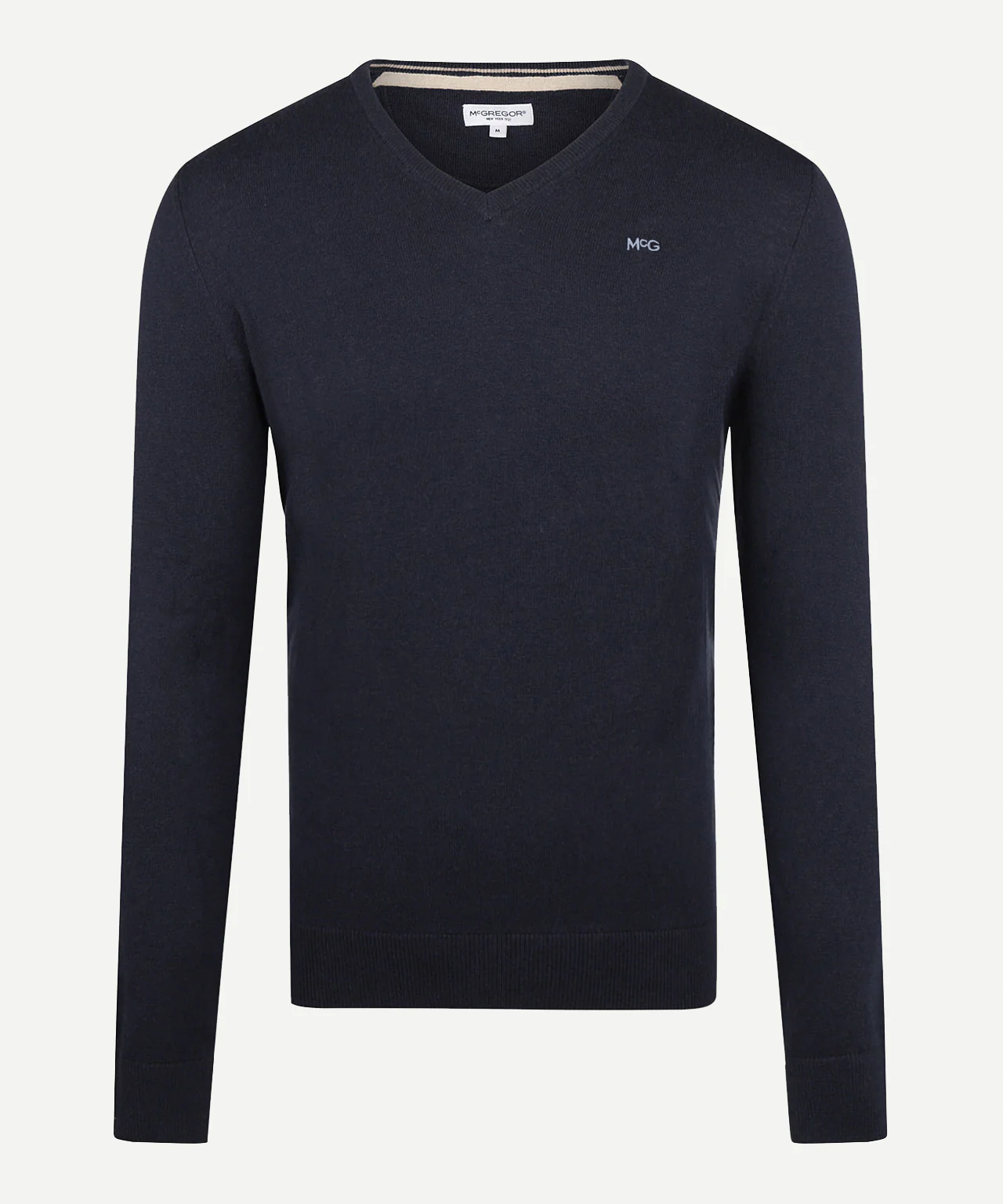 Deze trui is gemaakt van een hoogwaardige mix van katoen en merinowol, voor een zachte en comfortabele draagervaring. Het item heeft lange mouwen, een ribgebreide V-hals en ribgebreide manchetten. Op de borst bevindt zich een subtiel McGregor-logo. Een tijdloze en veelzijdige trui, geschikt voor zowel casual als smart-casual looks.
