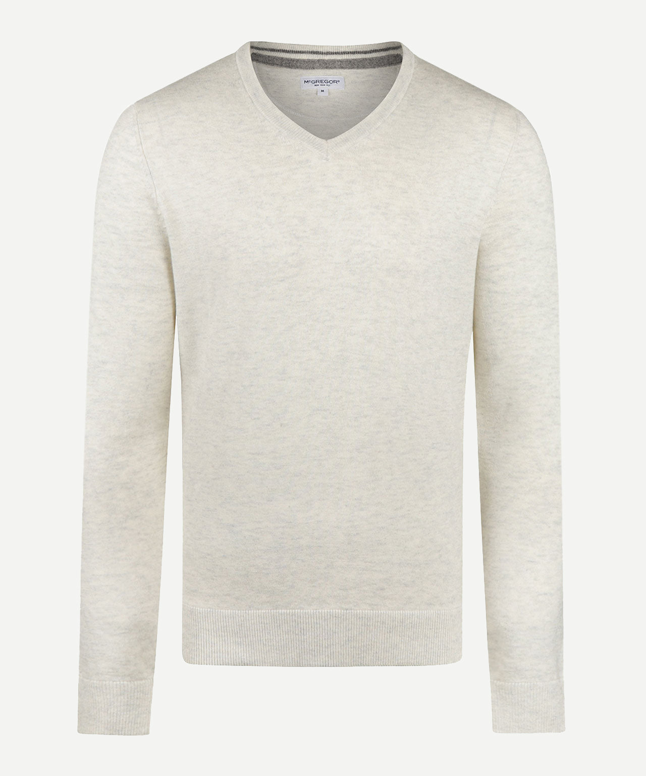 Deze trui is gemaakt van een hoogwaardige mix van katoen en merinowol, voor een zachte en comfortabele draagervaring. Het item heeft lange mouwen, een ribgebreide V-hals en ribgebreide manchetten. Op de borst bevindt zich een subtiel McGregor-logo. Een tijdloze en veelzijdige trui, geschikt voor zowel casual als smart-casual looks.
