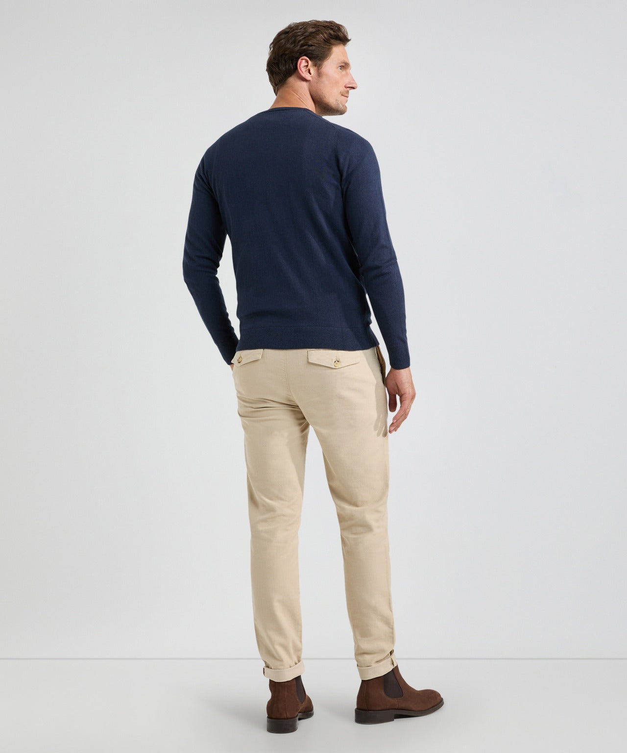Deze trui is gemaakt van een hoogwaardige mix van katoen en merinowol, voor een zachte en comfortabele draagervaring. Het item heeft lange mouwen, een ribgebreide ronde hals en ribgebreide manchetten. Op de mouw bevindt zich een subtiel McGregor-logo. Een tijdloze en veelzijdige trui, geschikt voor zowel casual als smart-casual looks.