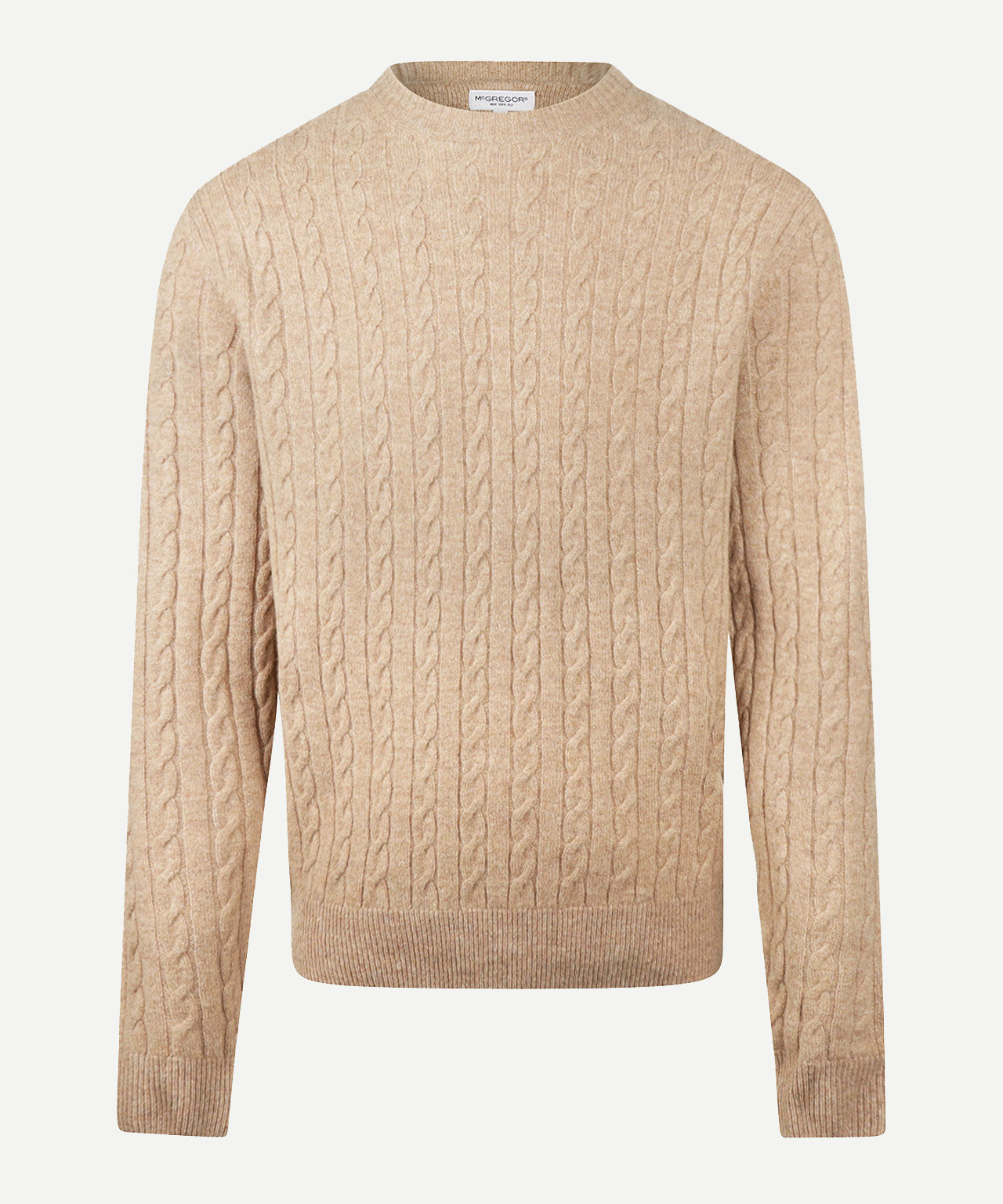 Deze rondehals trui is gemaakt van 100% lamswol van hoogwaardige kwaliteit, voor een zachte en luxe draagervaring. De trui heeft een regular fit, lange mouwen, een ribgebreide ronde hals en ribgebreide manchetten. Het klassieke kabelpatroon geeft de trui een tijdloze en stijlvolle uitstraling. Een veelzijdig en duurzaam item voor iedere garderobe.